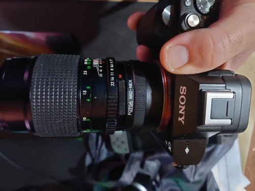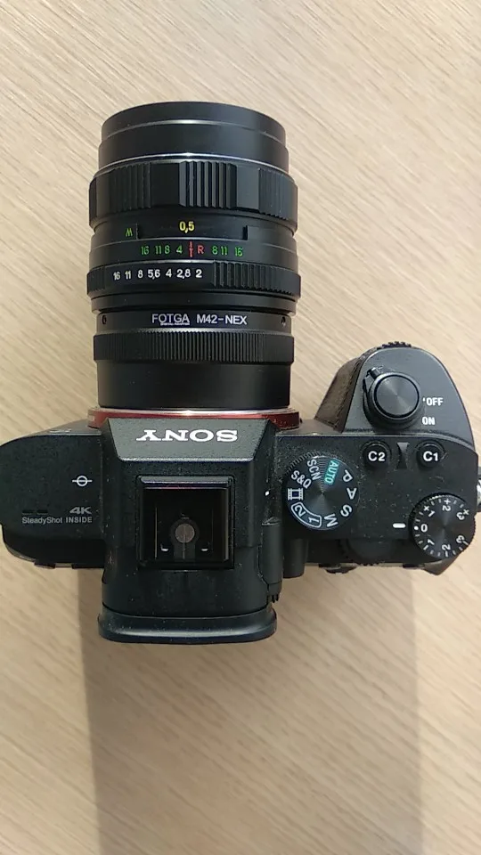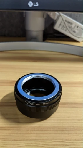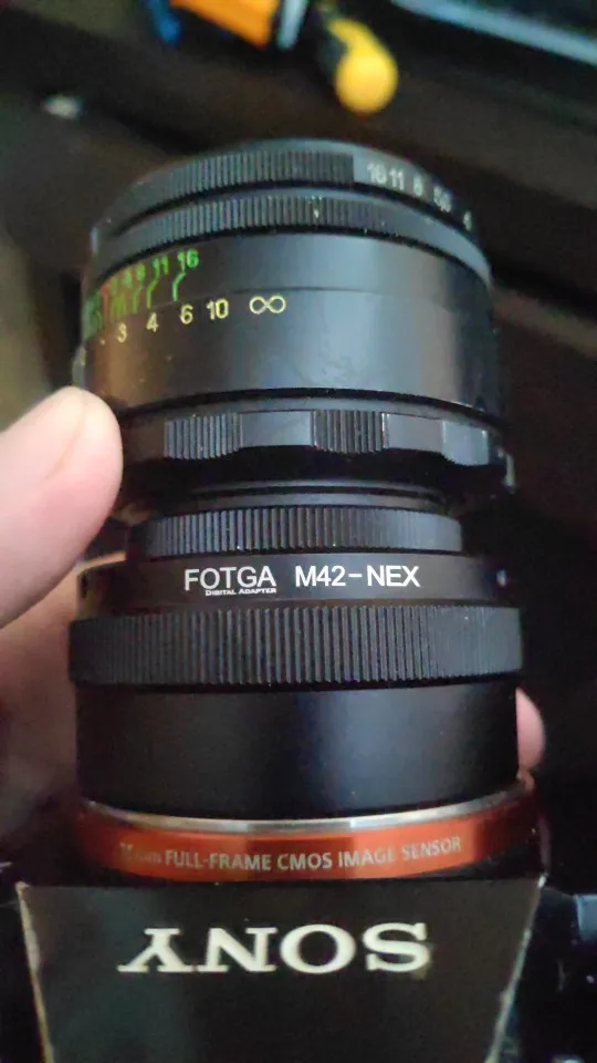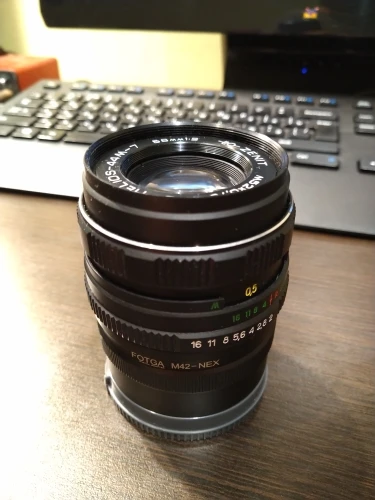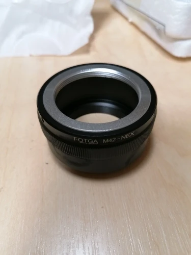 Good lens adapter for M42 (mostly USSR Zenit lenses) to Sony NEX (E-mount). Fkd some reason all of the 4 lenses I tested with this adapter have small jump over the infinity, so lens scale shows infinity and it is unfocused, until you rotate focus a bit closer, 10-20 meters depending on the lens. Also I don't understand why adapter's developers couldn't set the thread position the way so focus and diafragm scales would be on the top, not on the left of the camera