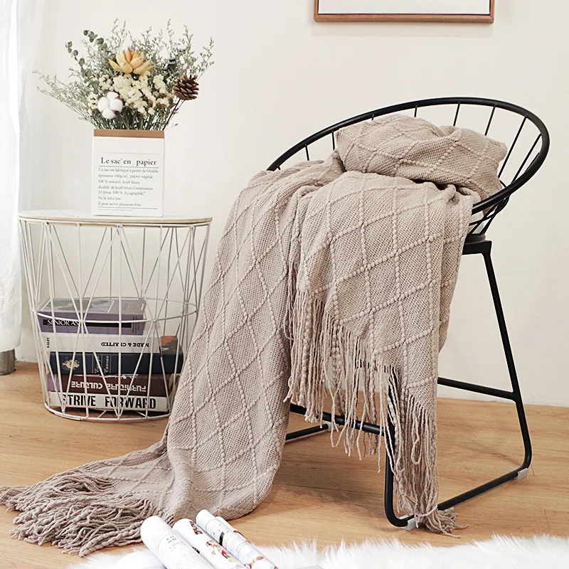 Скандинавские вязаные диванные одеяла на кровать, диванные одеяла с кисточками для путешествий и телевизора, мягкое полотенце, гостиничные одеяла, домашний декор