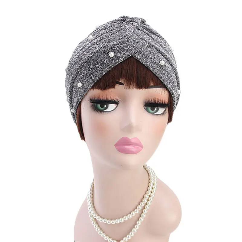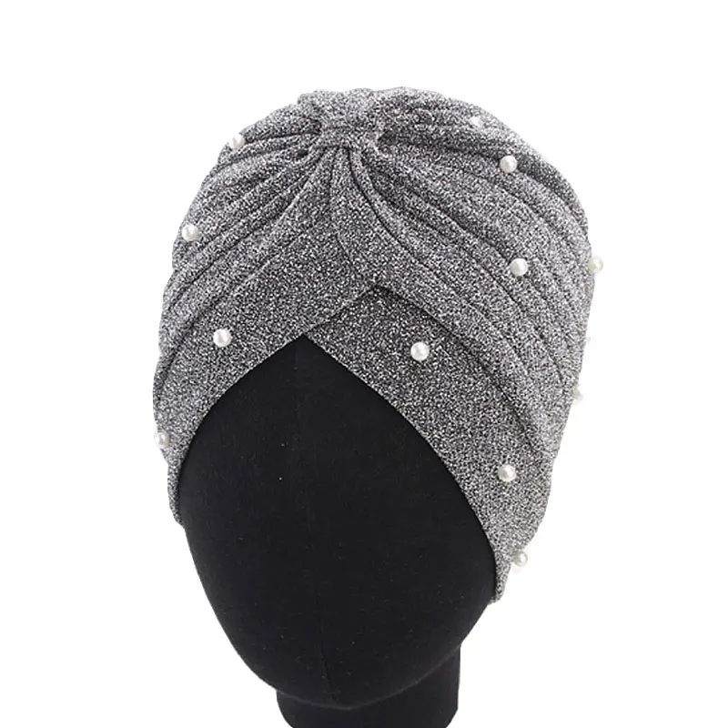 Шапка с узлом Женская в мусульманском стиле, повязка на голову с жемчугом, цвет серебристыйЗолотой, в индийском стиле, Осень-зима