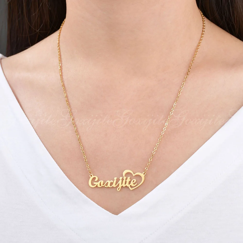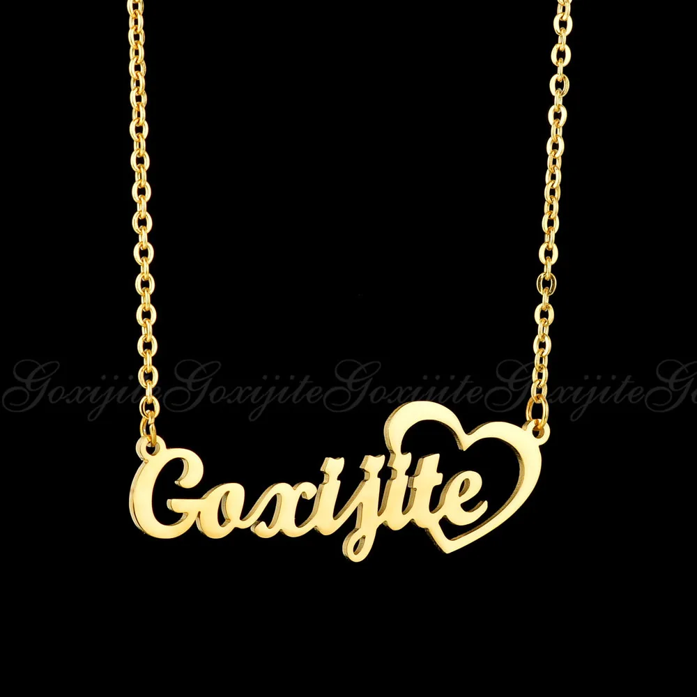 Женское Ожерелье с именем Goxijite, ожерелье из нержавеющей стали с именем Золотого сердца, подарочное ювелирное ожерелье