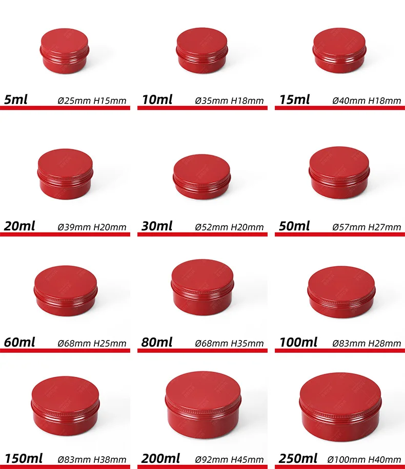 4)5g 10 г 1 5g 30 г 50 г 100 г 150 г 200 г 250 г красный алюминиевый контейнер/Алюминиевые банки для коробок