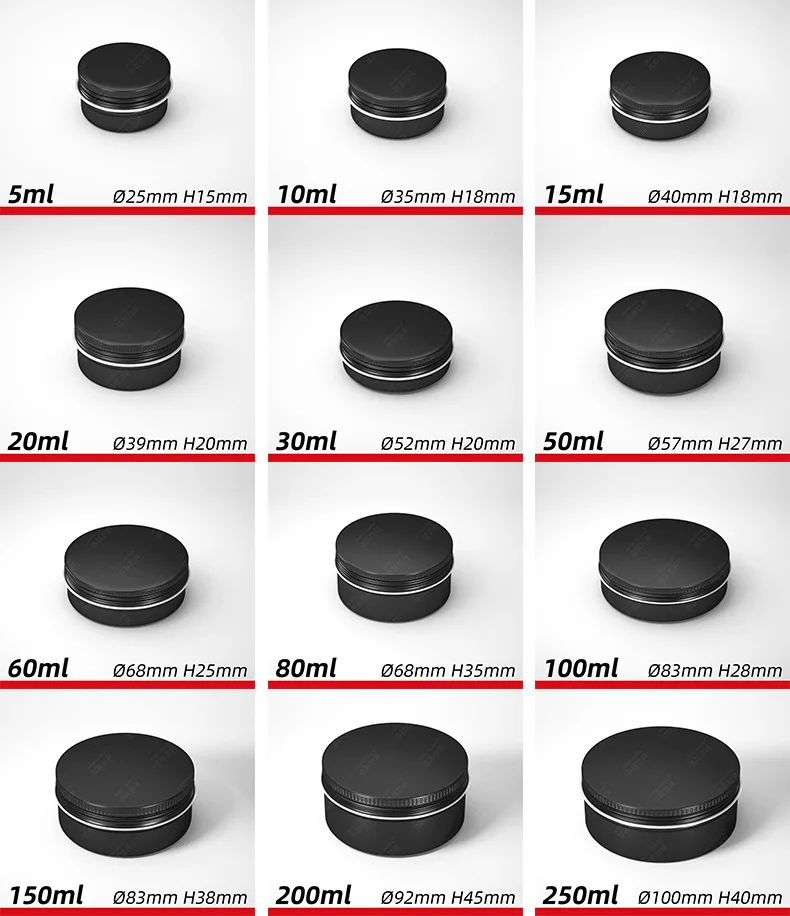 1)5g 10 г 1 5g 30 г 50 г 60 г 100 г 150 г 200 г 250 г матовый черный алюминиевый контейнер/Алюминиевые банки для коробок