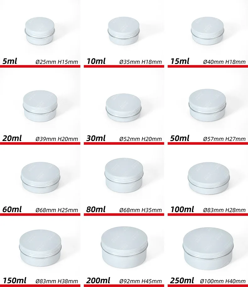 5)5g 10 г 1 5g 30 г 50 г 60г100г 150 г 200 г 250 г белый алюминиевый контейнер/Алюминиевые банки для коробок