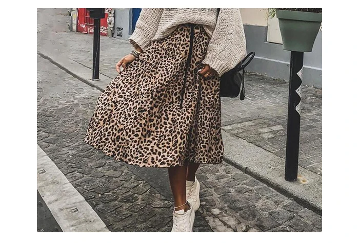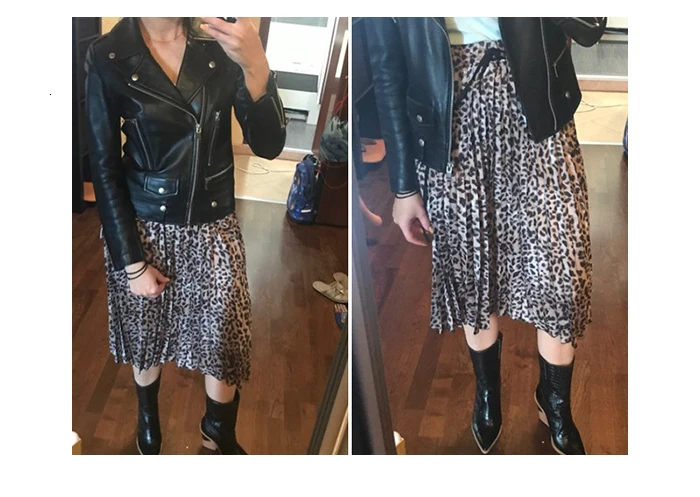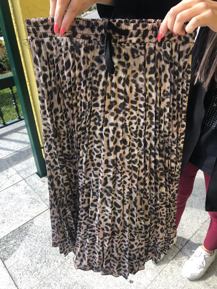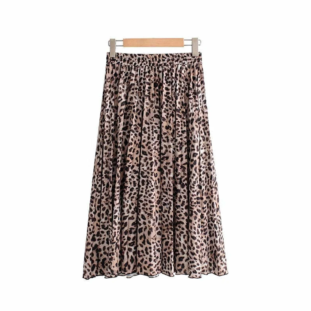 Юбка-миди Женская плиссированная, с леопардовым принтом и поясом на резинке