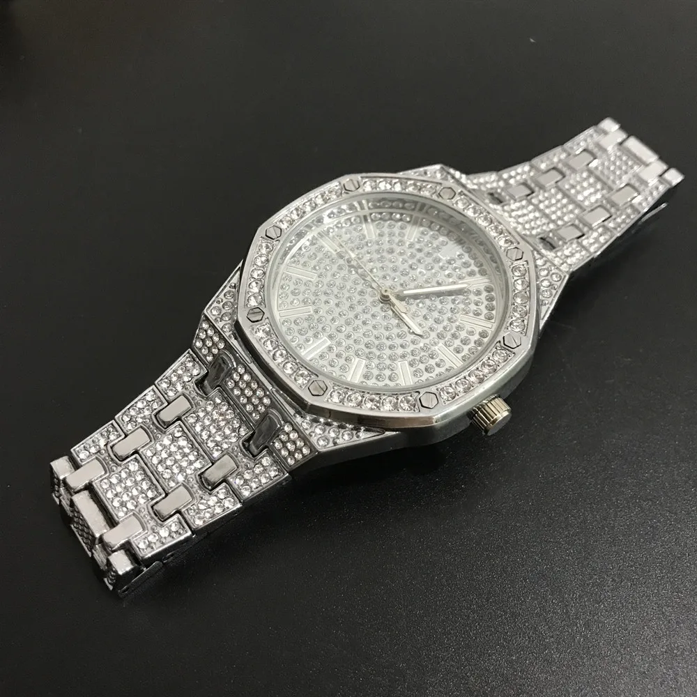 Роскошные мужские часы Майами с кристаллами в стиле хип-хоп, мужски...