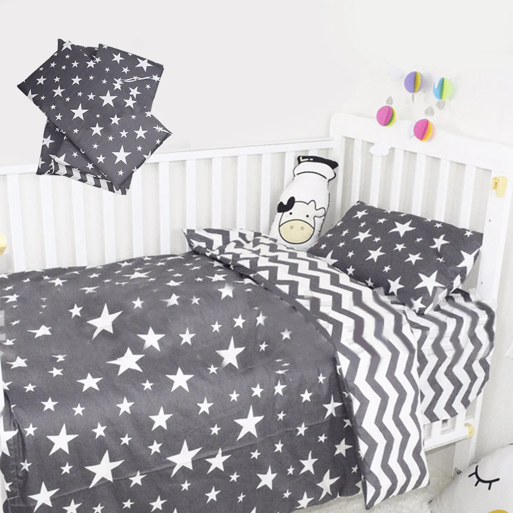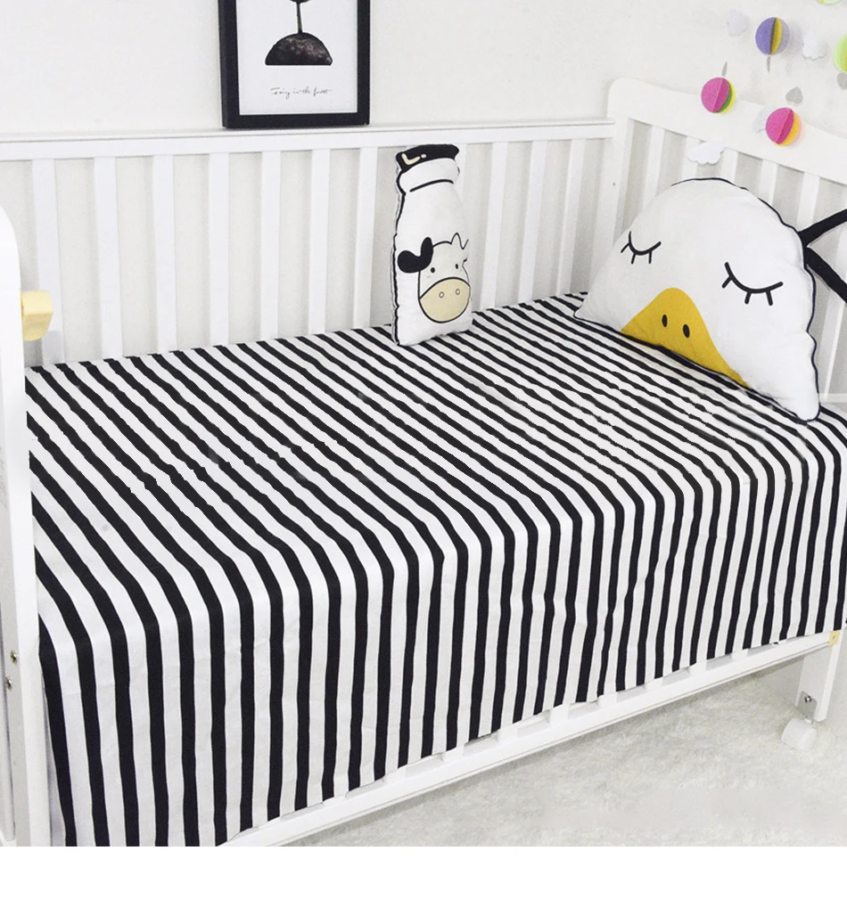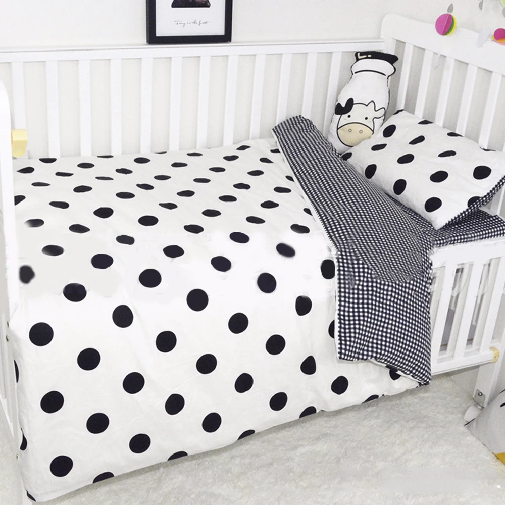 Комплект постельного белья из 3 предметов для малышей, мягкие хлопковые комплекты для детской кроватки, черные и белые с мультяшным рисунком, комплект для детской кроватки, включая пододеяльник, наволочку, простынь