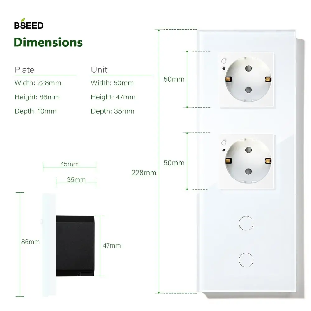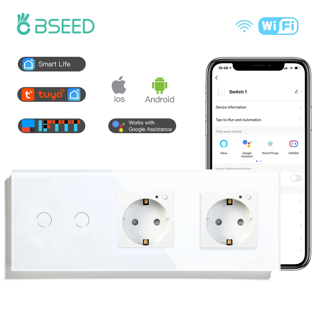 BSEED 2Gang 123 способ переключатель Wi-Fi с двойной Wi-Fi розетки ЕС из хрустального стекла Панель Управление от Alexa Google приложение Tuya