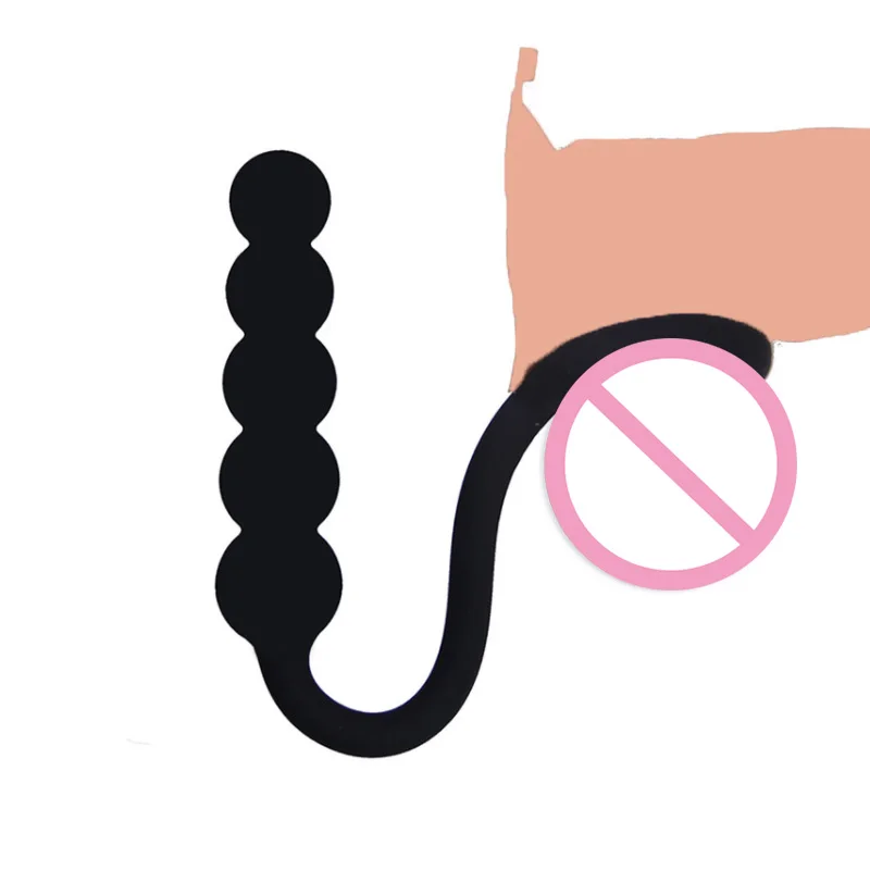 Силиконовая Анальная пробка, 5 шариков, с кольцом для члена, массажер простаты, анальные шарики, анус, мастурбация, эротическая игрушка для взрослых