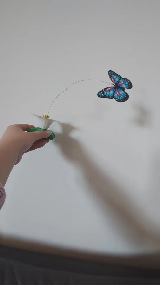 забавная игрушка, моим котам понравилась)) но младшему коту её хватило на 3 дня))) крылья оторвал в первый день, во ватой день погнул всю проволочку, а на третий день окончательно сели батарейки... но была 3 дня забава)))