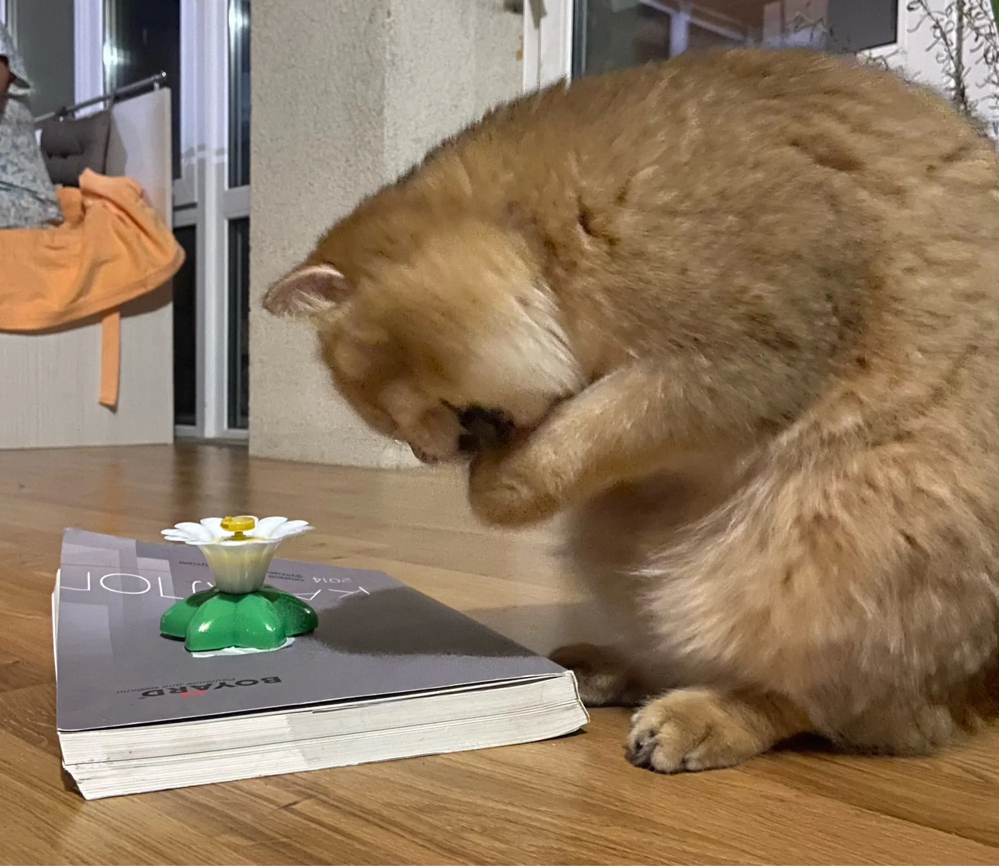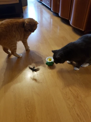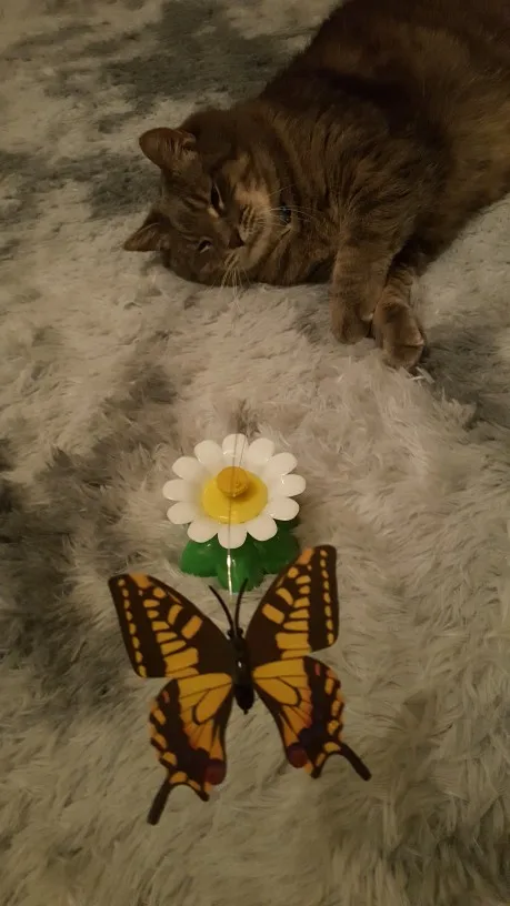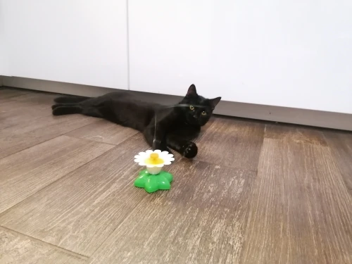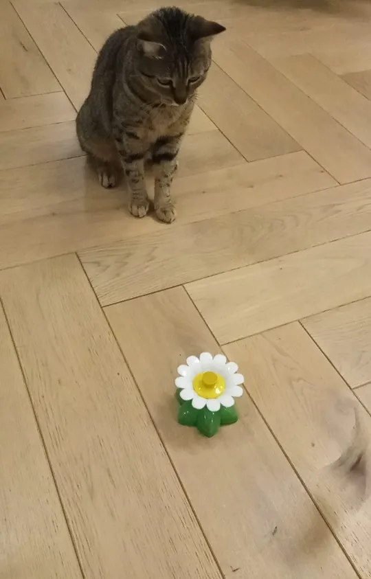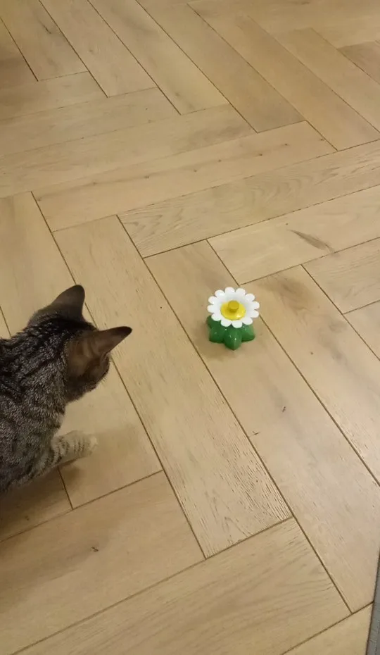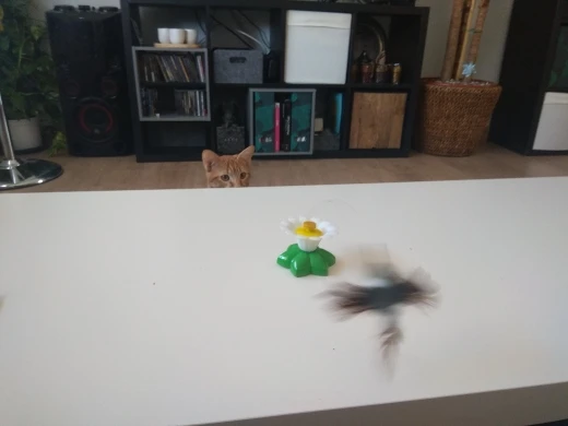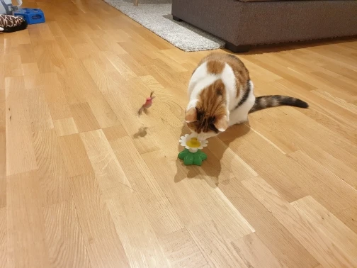 The toy was very interesting for the cat. The bird vibrates. When a cat pushes him, it "flies" around the flower. If your cat likes to bite it is a disposable toy, the hummingbird is made of polystyrene and it loses feathers quickly. It would be useful to have a sucker on the floor, because when a cat catches a bird, it turns over the flower.