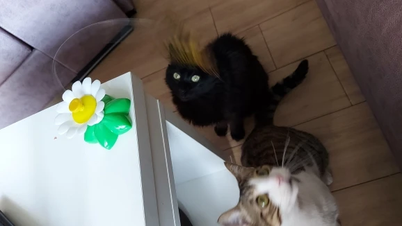 Игрушка шла долго, за это минус заезда. Из минусов ещё- она неустойчивая, липкого слоя на дне нет, по-этому сама на двухсторонний скотч прилепила к толстому каталогу. За 10 мин игры хвоста и крыльев - как не бывало, хотя игра не была слишком уж активной. Из плюсов- шум почти не издаёт, котам было очень интересно. В целом- рекомендую.