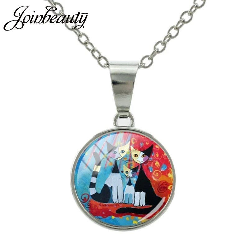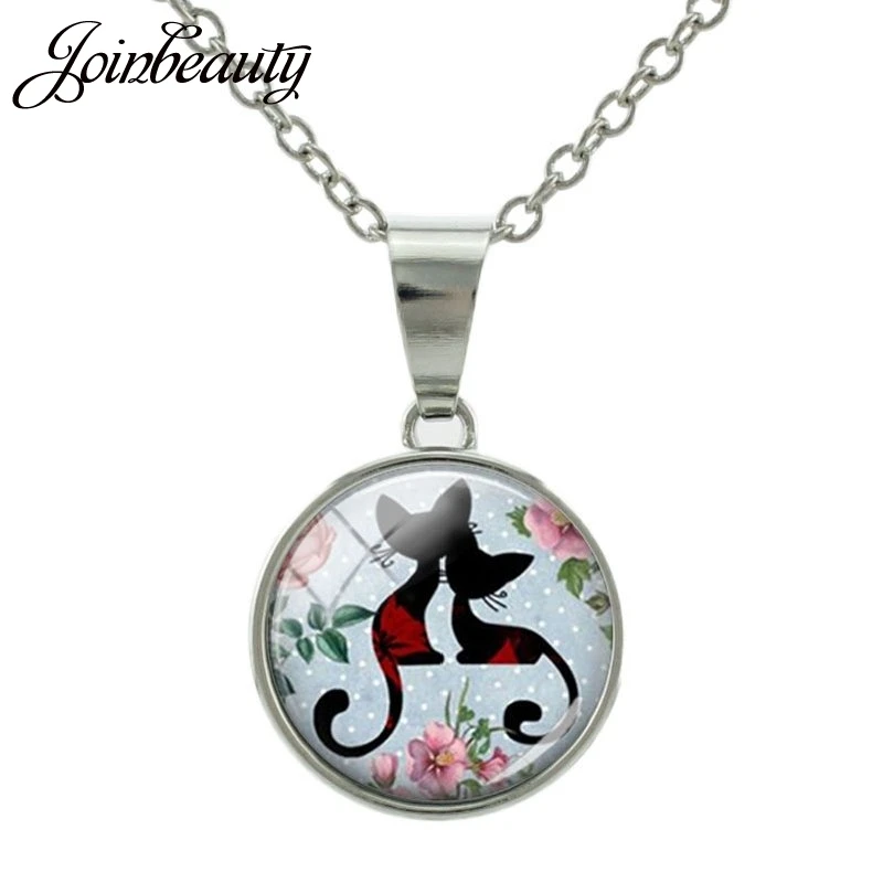 JOINBEAUTY, двойное ювелирное изделие для влюбленных кошек, женские ожерелья, стеклянный кабошон, ожерелье с застежкой, кулон ручной работы NS964