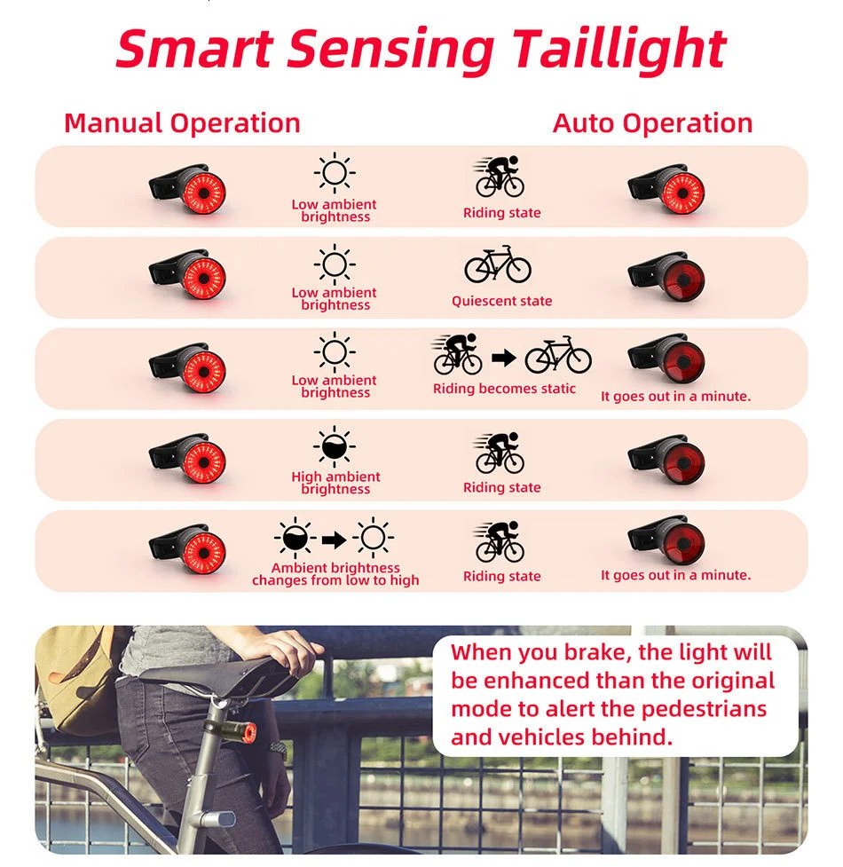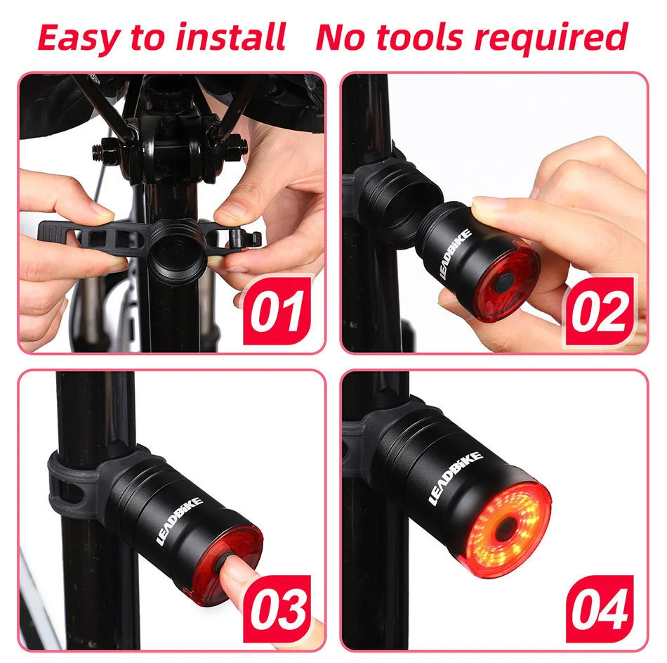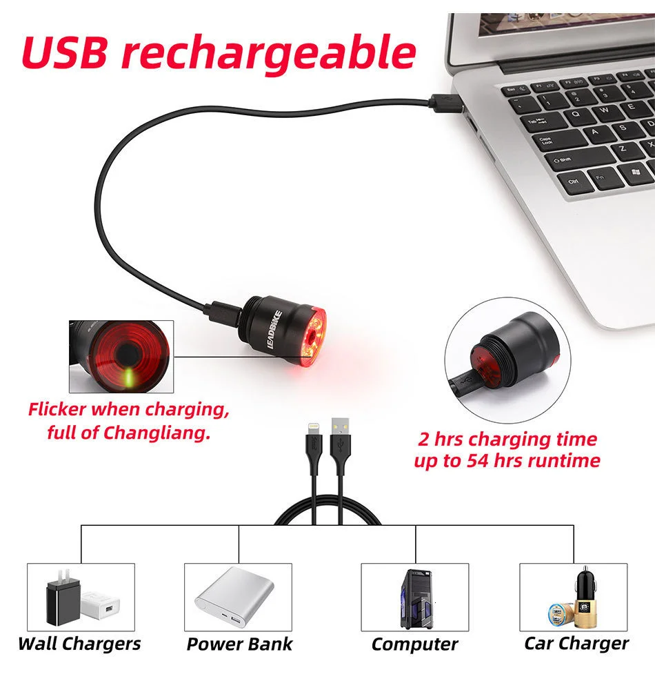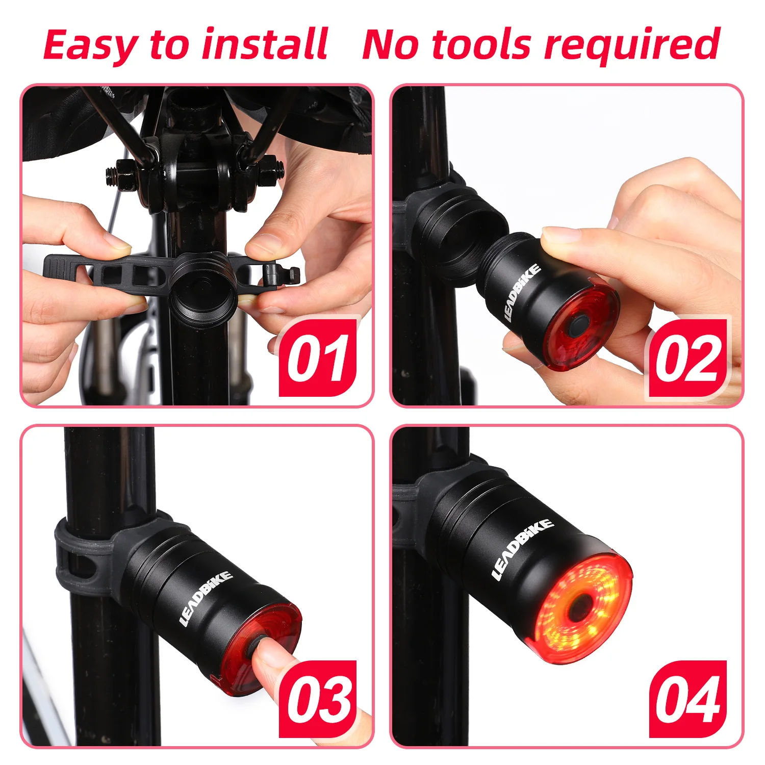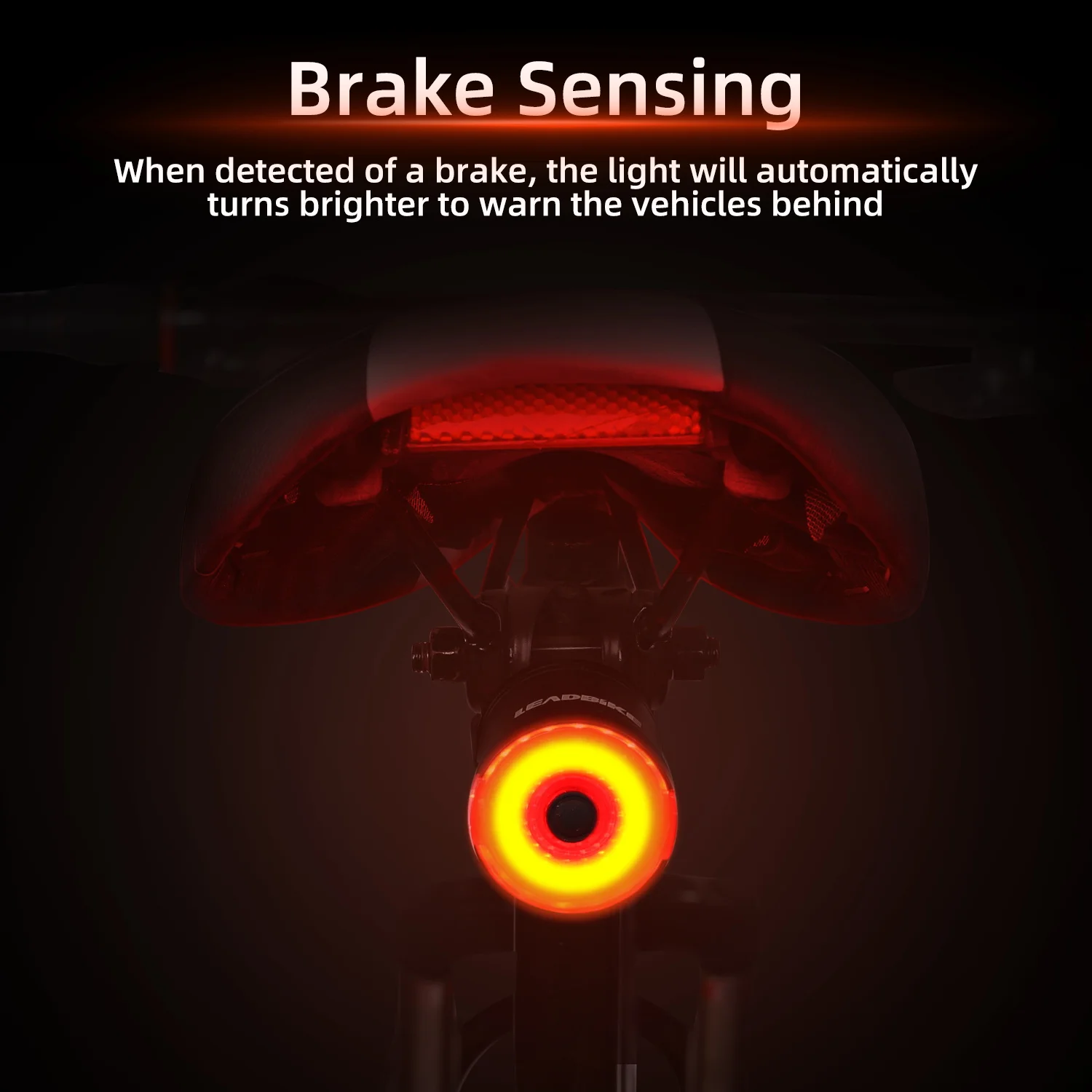 Задний светильник для велосипеда LEADBIKE, IPX6, с датчиком стоп-сигнала, с зарядкой от USB