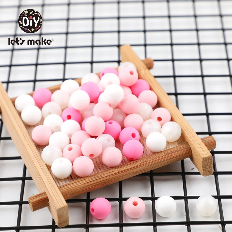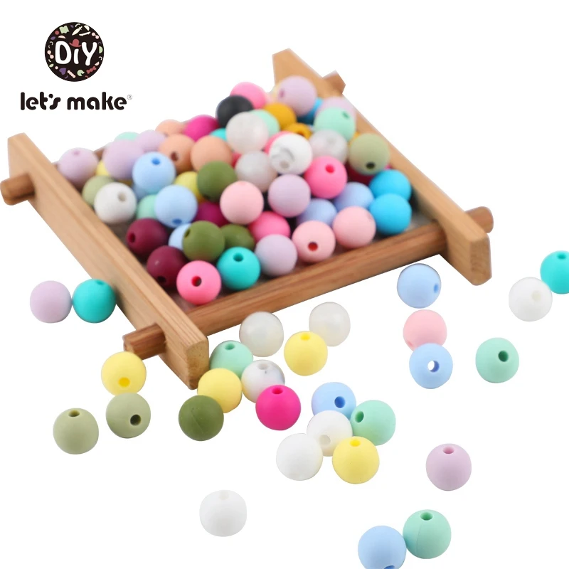 Детский Прорезыватель для зубов Let's make, 50 шт., Силиконовые бусы для прорезывания зубов цепочка-пустышка сделай сам, 9 мм, пищевые силиконовые бусины, не содержит БФА