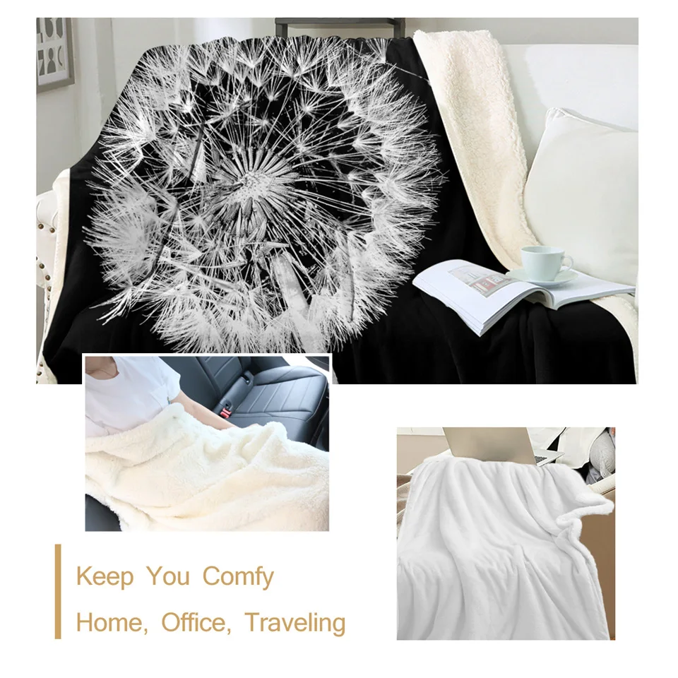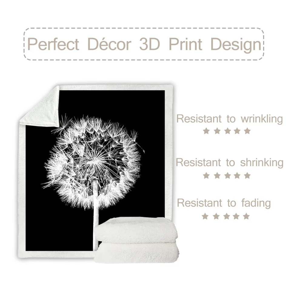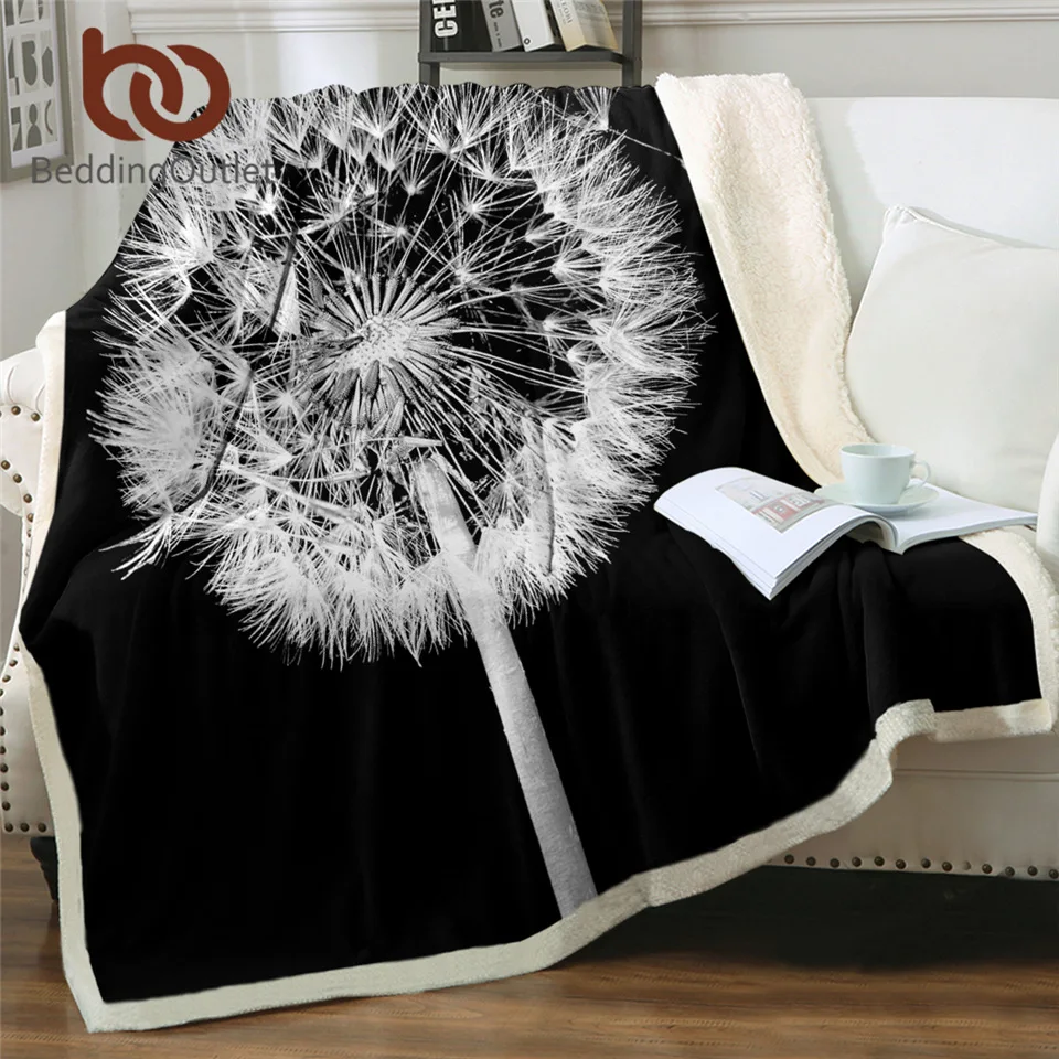 Одеяло в виде одуванчиков BeddingOutlet, плюшевое покрывало с 3D принтом, черно-белое пушистое одеяло, покрывало для кровати для фотосъемки