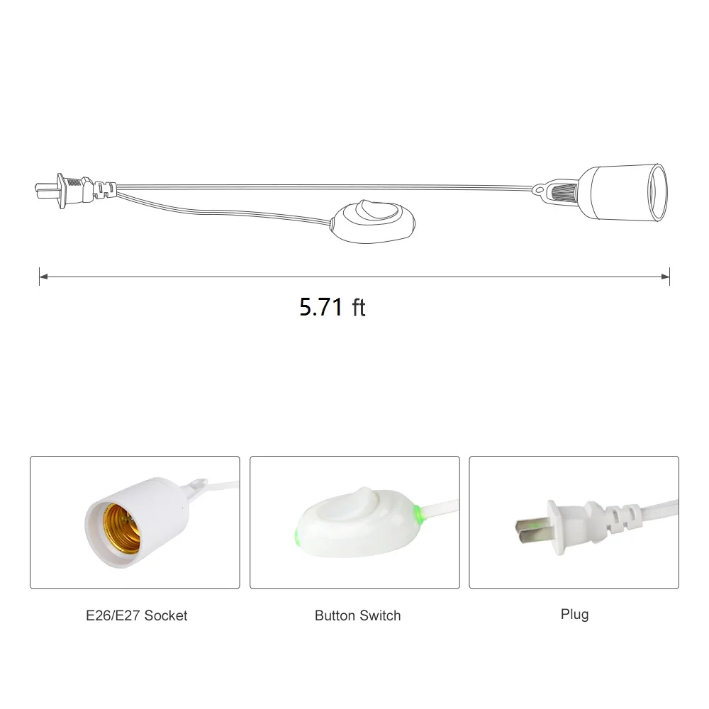 1.E26/E27 светильник розетка для розетки переменного тока адаптер вкл/выкл, 6 футов шнур