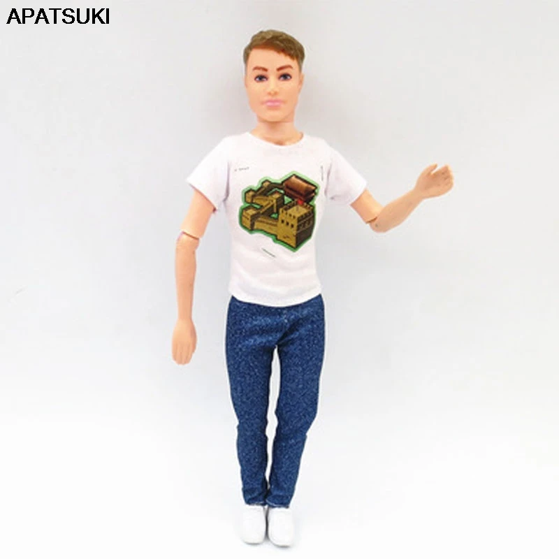 Игрушки для детей, белые футболки джинсы, брюки 16 г. Одежда для мальчиков, куклы Кен, наряды для куклы Барби, парень Кэн