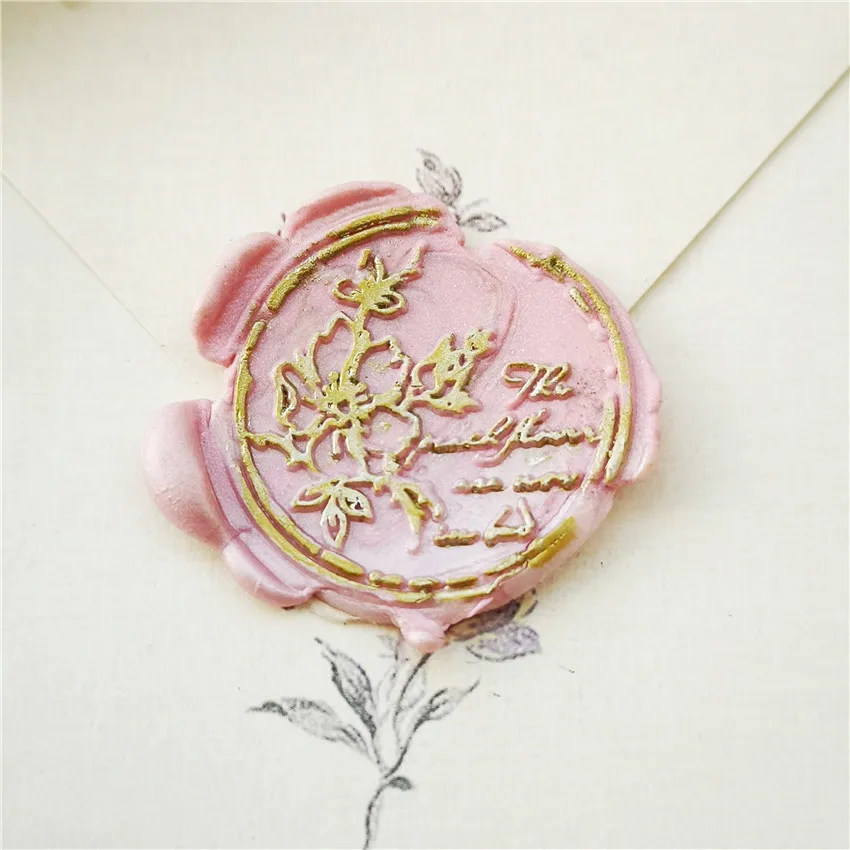 Печать для сургучной печати с цветами персика, подарки, дизайнерская сургучная печать, деревянная ручка головка штемпеля, печать для свадебных конвертов, пакетов