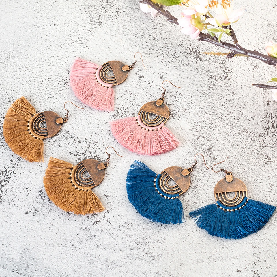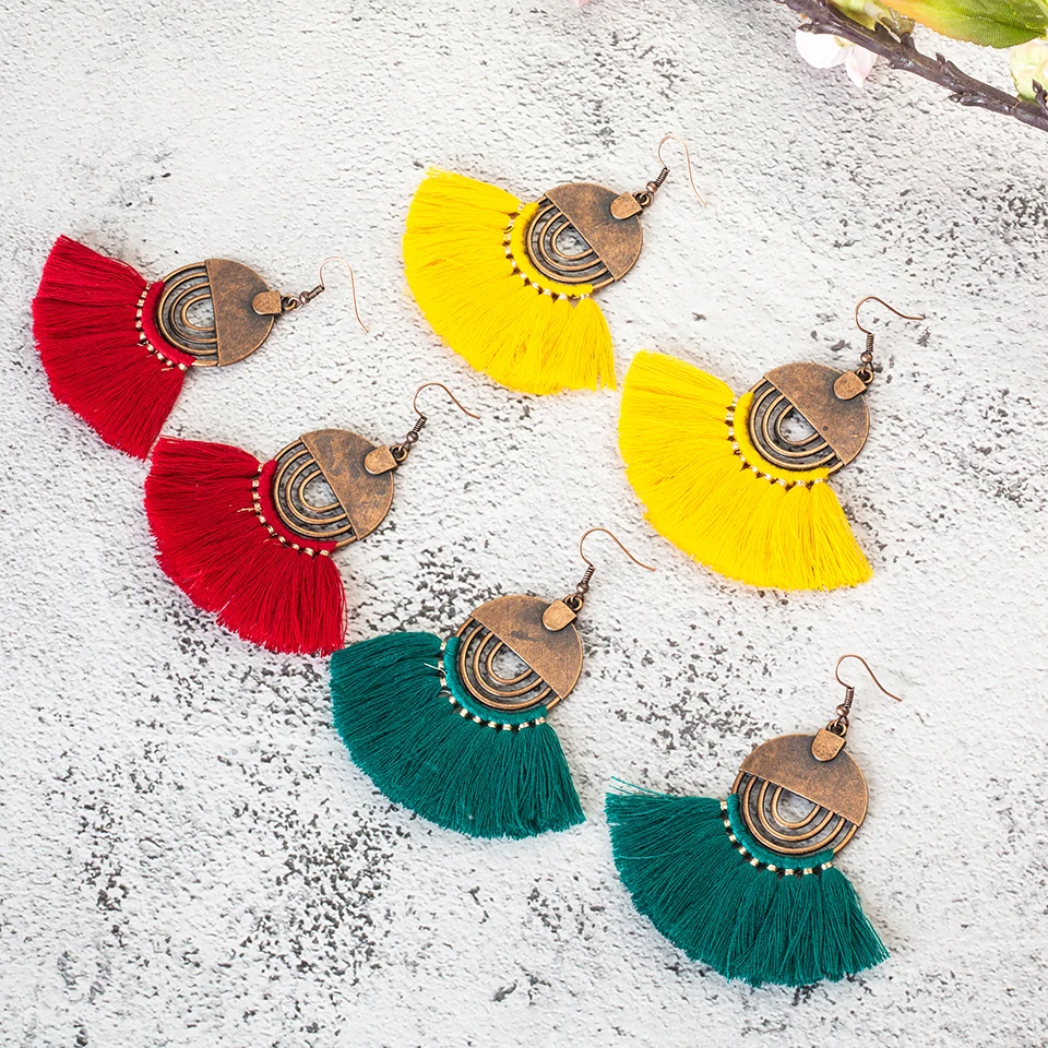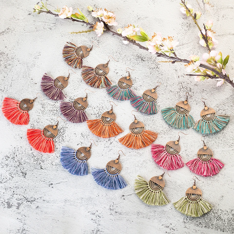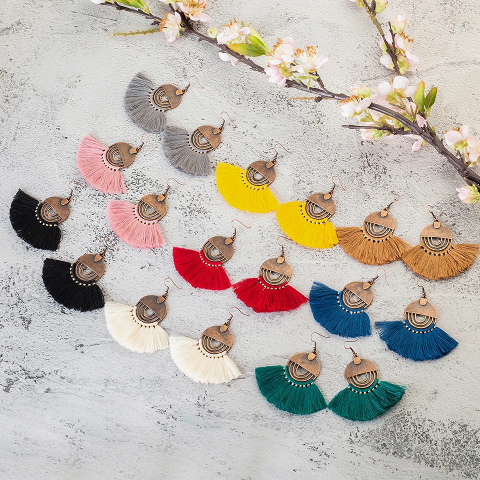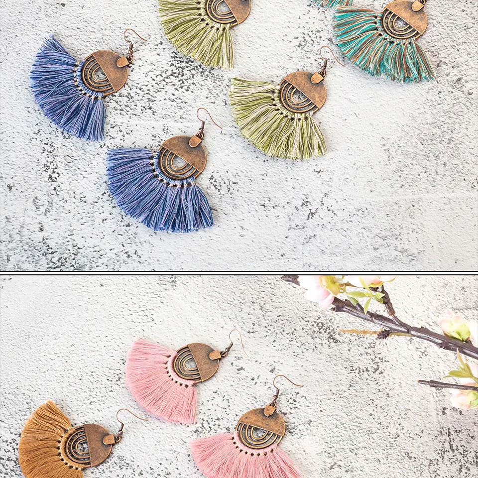 Boho Bohemia этнические цветные круглые Висячие висячие серьги с кисточками для женщин женские ушные украшения Свадебные аксессуары ювелирные изделия