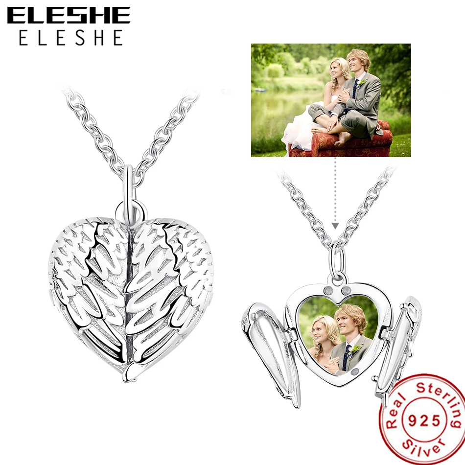 ELESHE персонализированные фото ожерелья и подвески 925 стерлингового серебра с капюшоном, надписью Angel и принтом крылышки в форме сердца, цепочка, колье для женщин, Подарок на годовщину