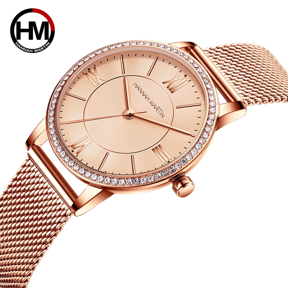 Изысканные элегантные женские часы со стразами, высококачественные ультратонкие женские часы из нержавеющей стали с сеткой, водонепроницаемые женские часы, Прямая поставка
