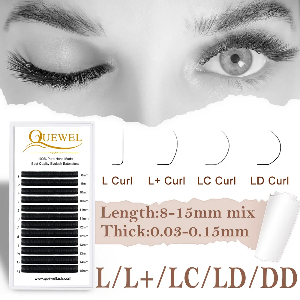 Ресницы Quewel индивидуальное наращивание ресниц LL +LCLDDD, профессиональные Натуральные Шелковые накладные ресницы, оптовая продажа