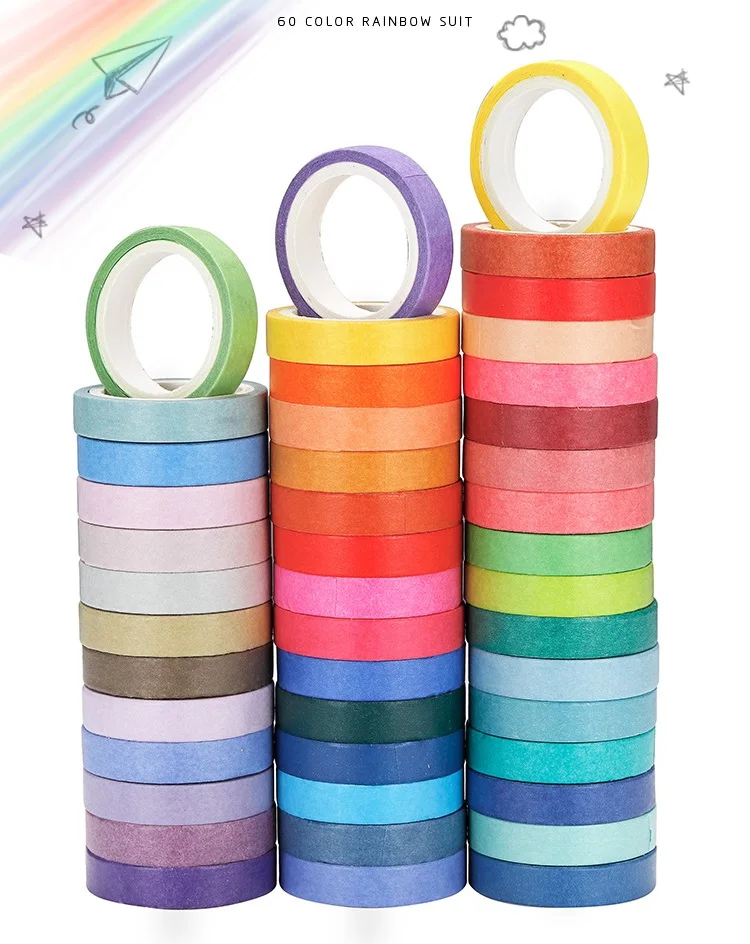 Клейкая лента для маскировки A6937, бумажная Радужная мини-набор декоративного скотча Васи, 8 мм, 60 шт.