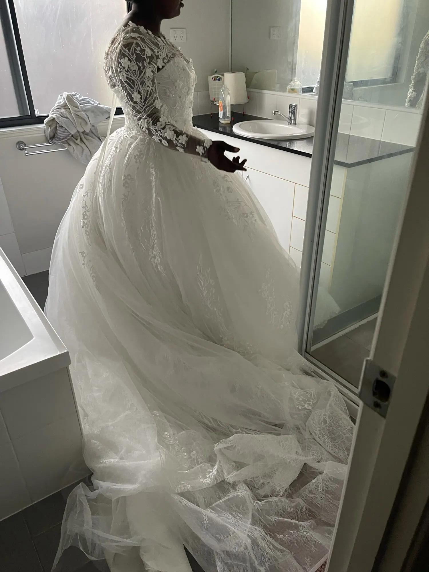 Более потрясающе, чем я думал, что это будет... Это лучше, чем большинство платьев, которые я видели в магазинах. Невероятно счастливое и $50 платье на заказ со шлейфом... Бесценный! Большое спасибо, это красиво!
