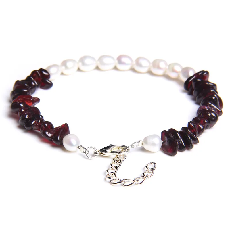 Натуральный гранат, чипсы, браслеты, женский подарок на день рождения, Регулируемый белый пресноводный круглый жемчуг, Bangel для мужчин, модные ювелирные изделия