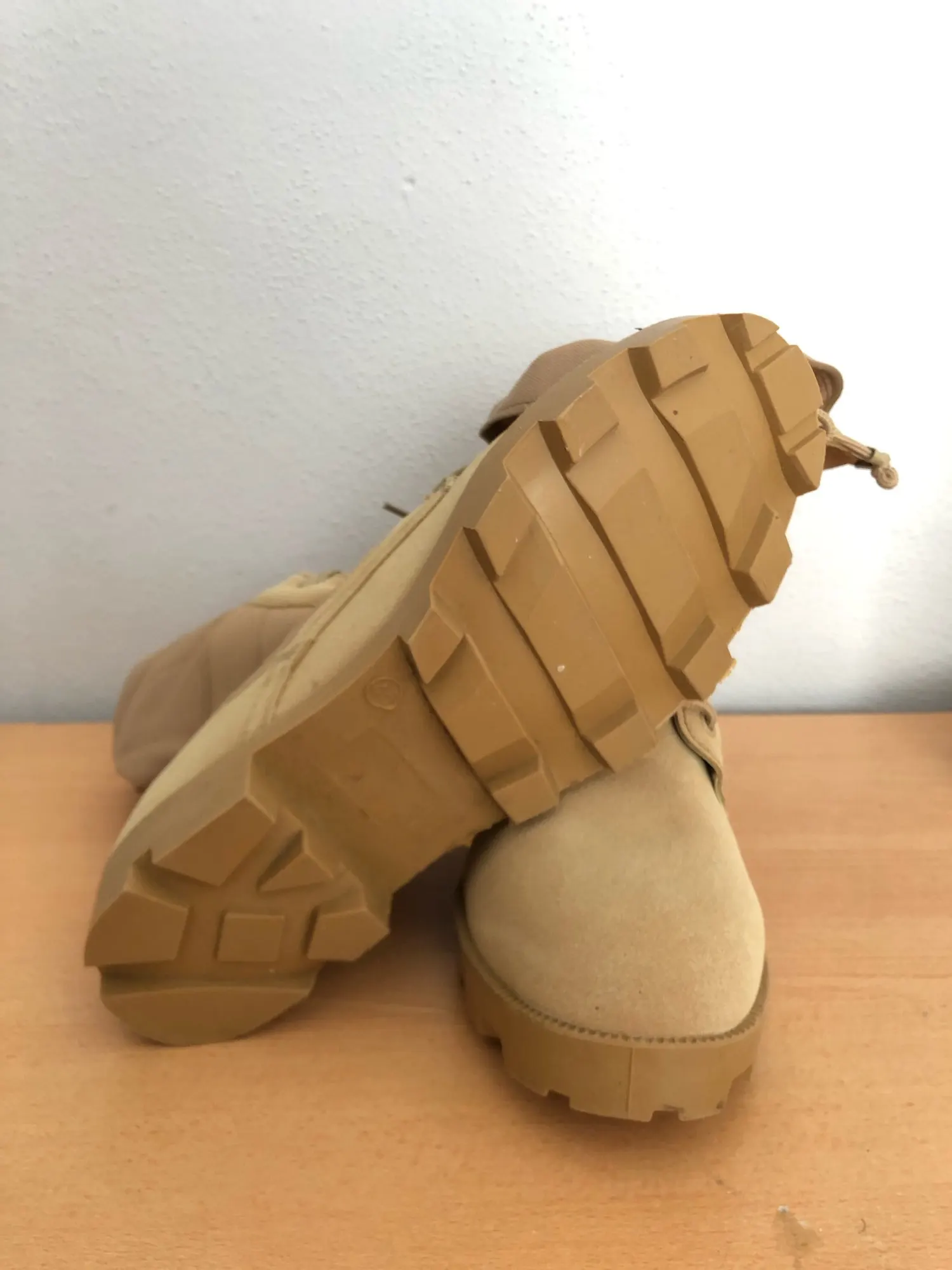 Китайський виробник розчарував. Невдала репліка оригінальних армійських черевиків, навряд чи витримає один похід. 1. Хлипкий матеріал схожий на шкіру приклеєний на тканьову основу. 2. Не відформована п"ятка. 3, Плоска підошва без підтримуючого супінатора. 4. Шнурки легкі,не зносостійкі. Для порівняння, на фото черевики які відслужили в надзвичайно важких умовах 3 роки)