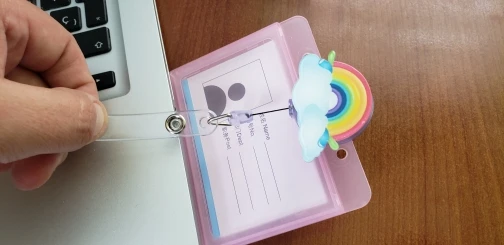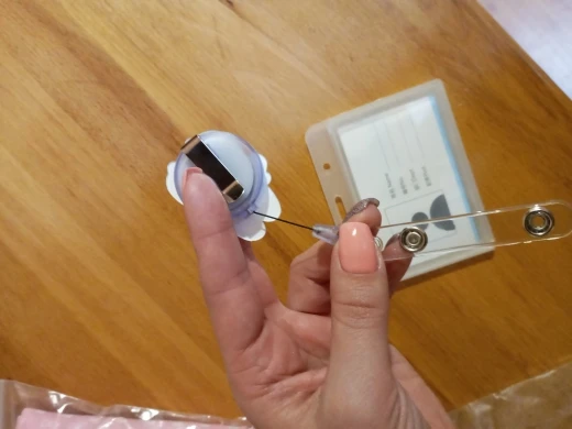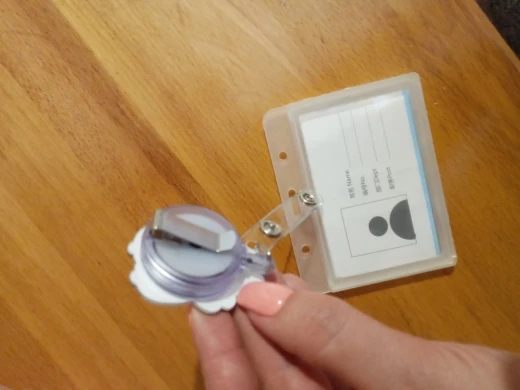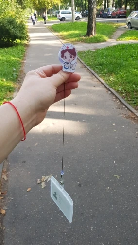 Не обратил внимание - карточка не вставляется сбоку, а надо открывать крышку сверху (кстати, это совсем непросто, открывается туго). Поэтому если вам надо вытаскивать карточку, чтобы отметиться при приходе на работу и на выходе - этот продукт не практичен. Я купил его для подарка, не думаю, что им будут пользоваться. Жаль. Качество неплохое, хотя пленка, которой покрыт значок, в некоторых местах не гладкая.