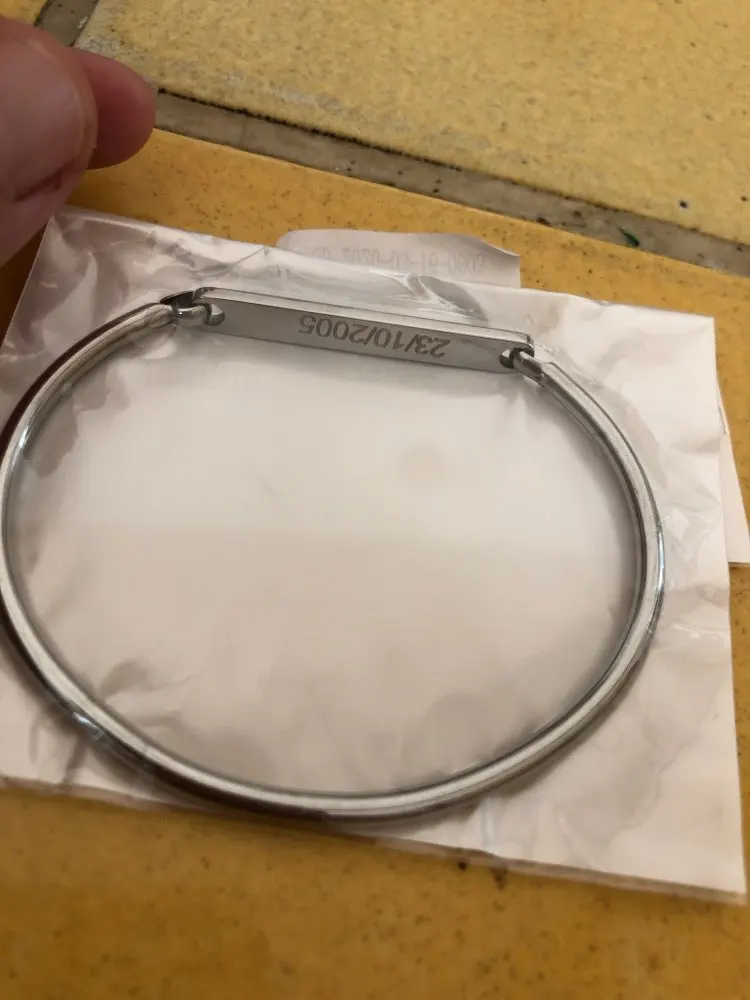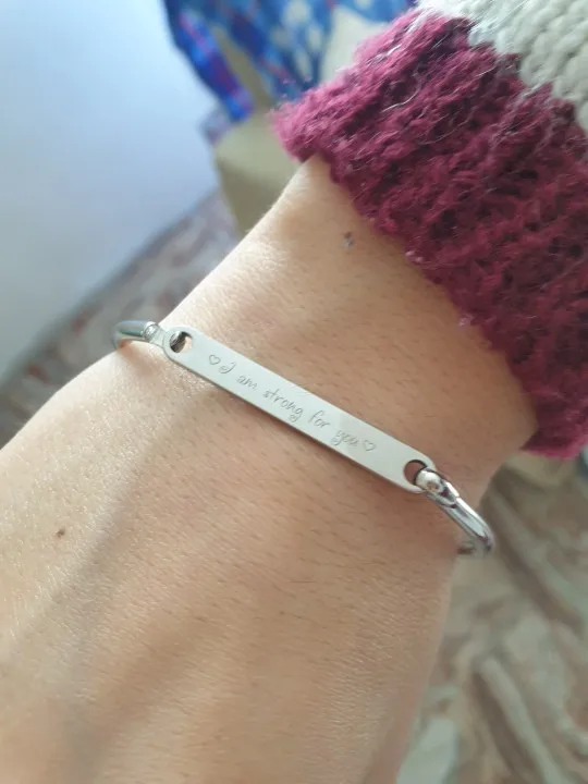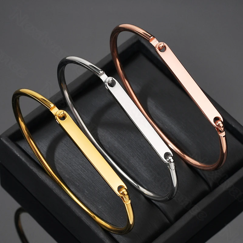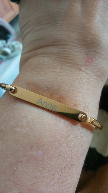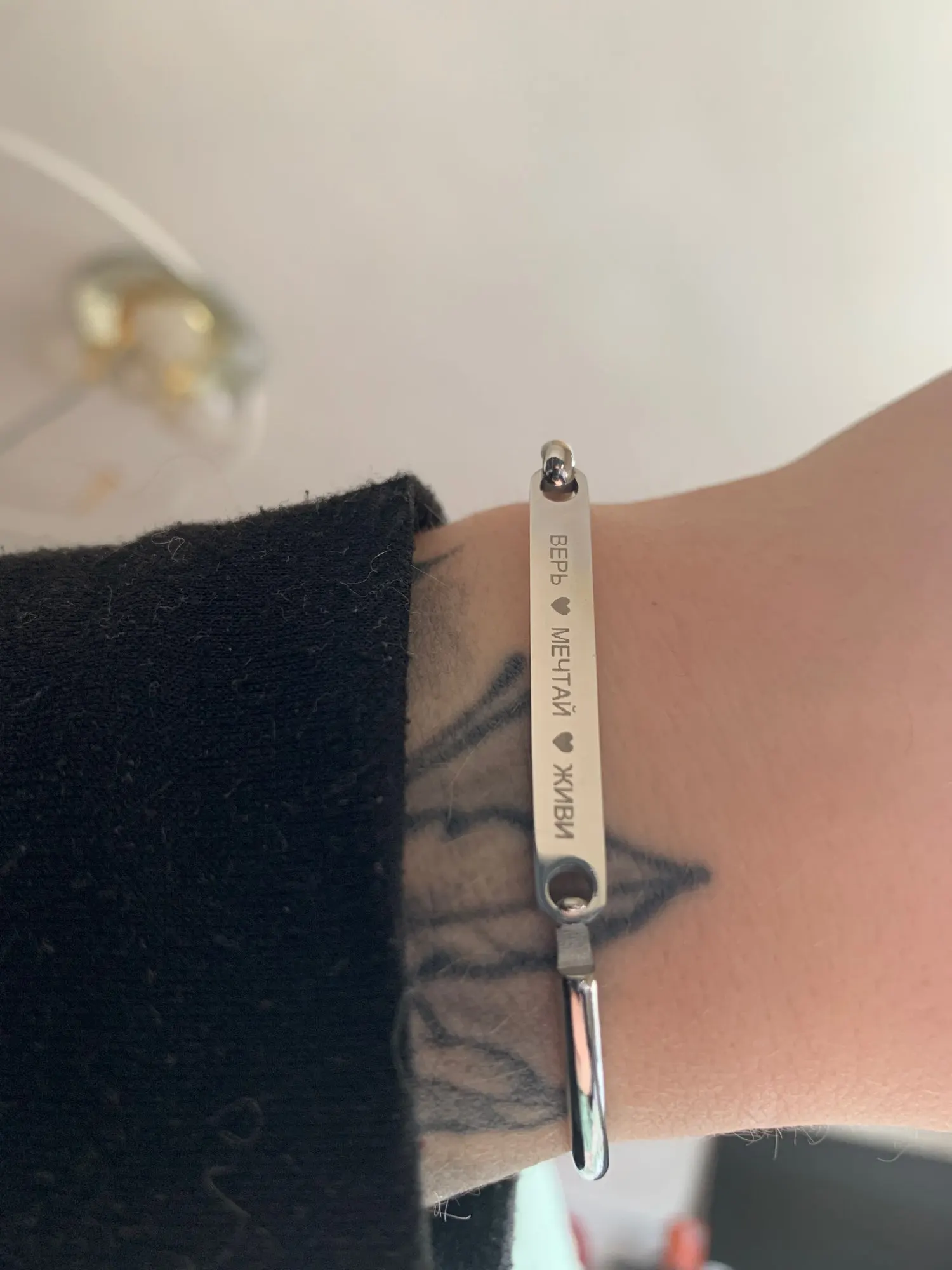 Люблю браслеты. Такие, как на картинке, и были очень быстрыми. Гравировка отличная! Только застежка открывается немного легко. Предположим, что застежка немного изогнута, чтобы держать застежку. Остальное чистое