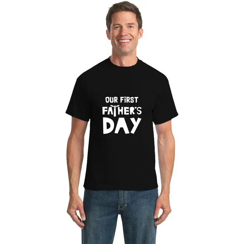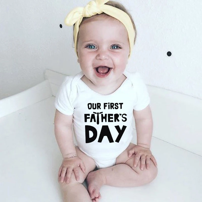 1 шт. наш первый Father's Day папа футболка и BabyRomper Семейные комплекты папа Дети Детские забавные отцов, наряды на День Св