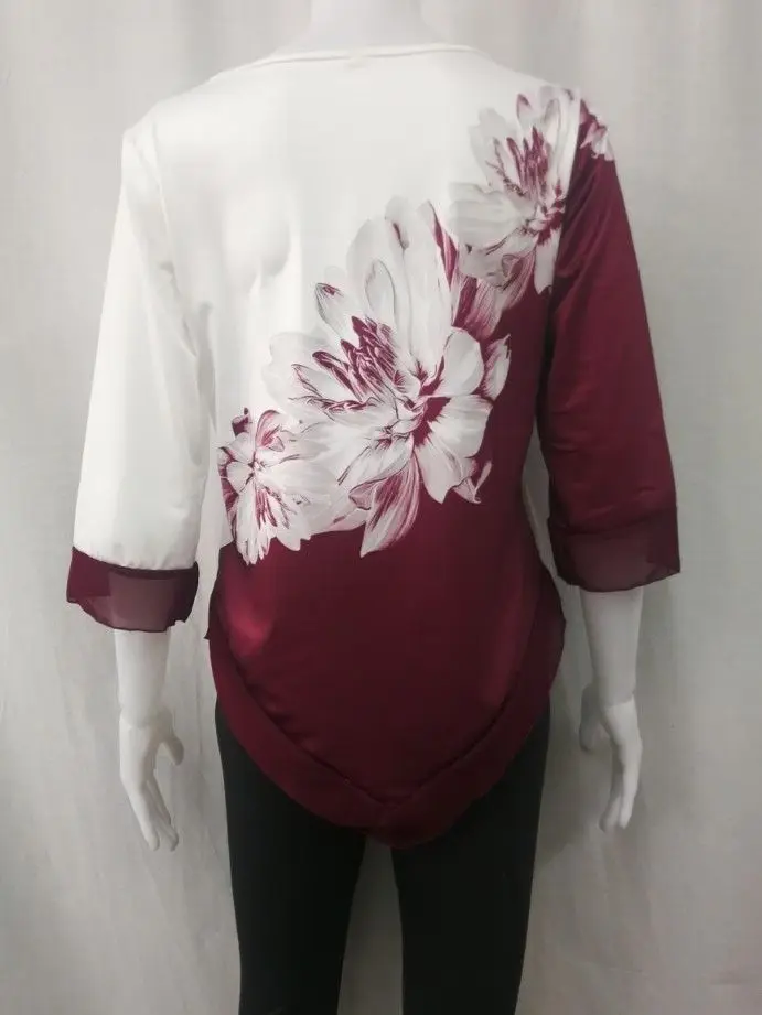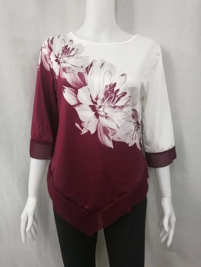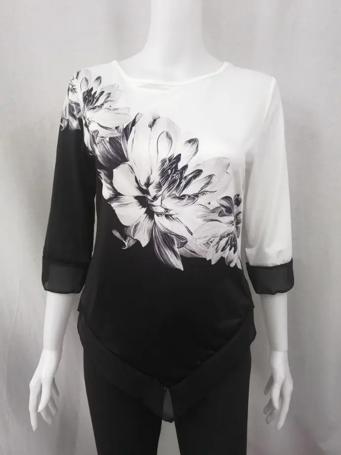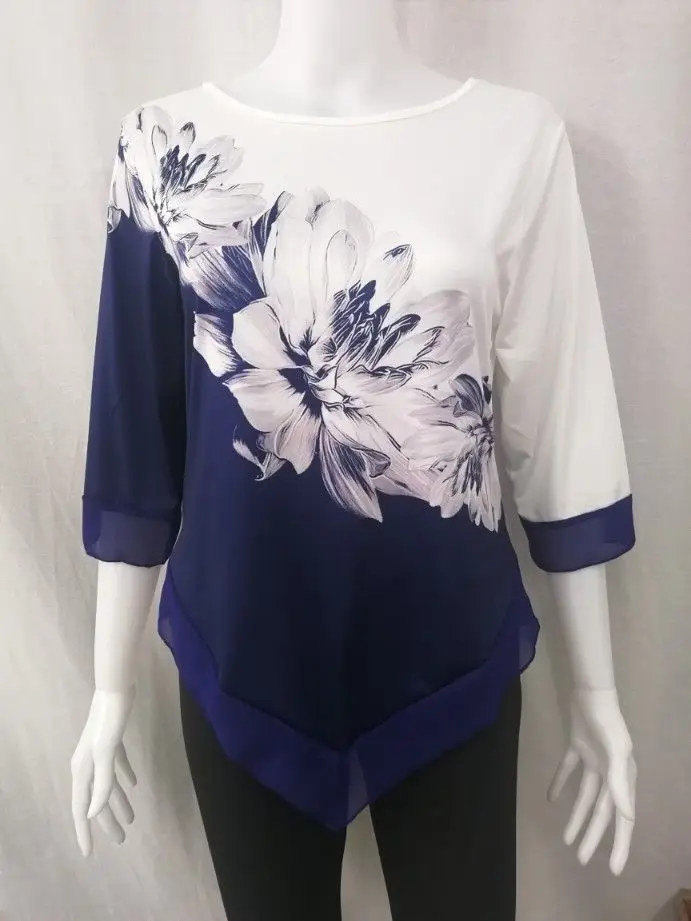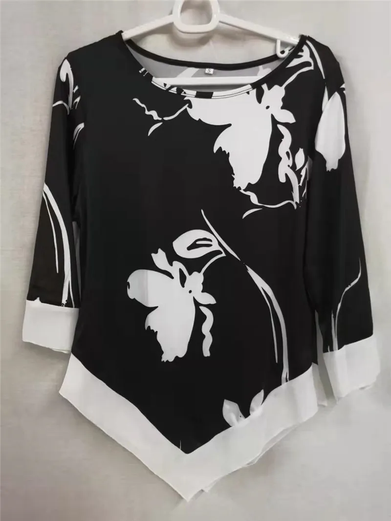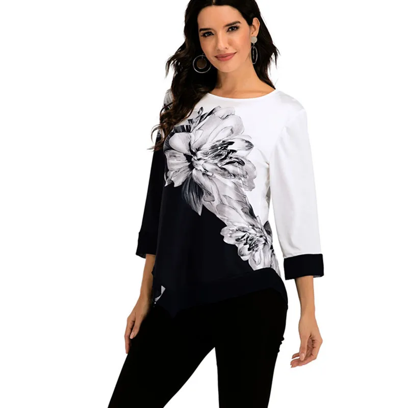 Женская демисезонная футболка с круглым вырезом и цветочным принтом