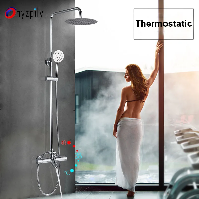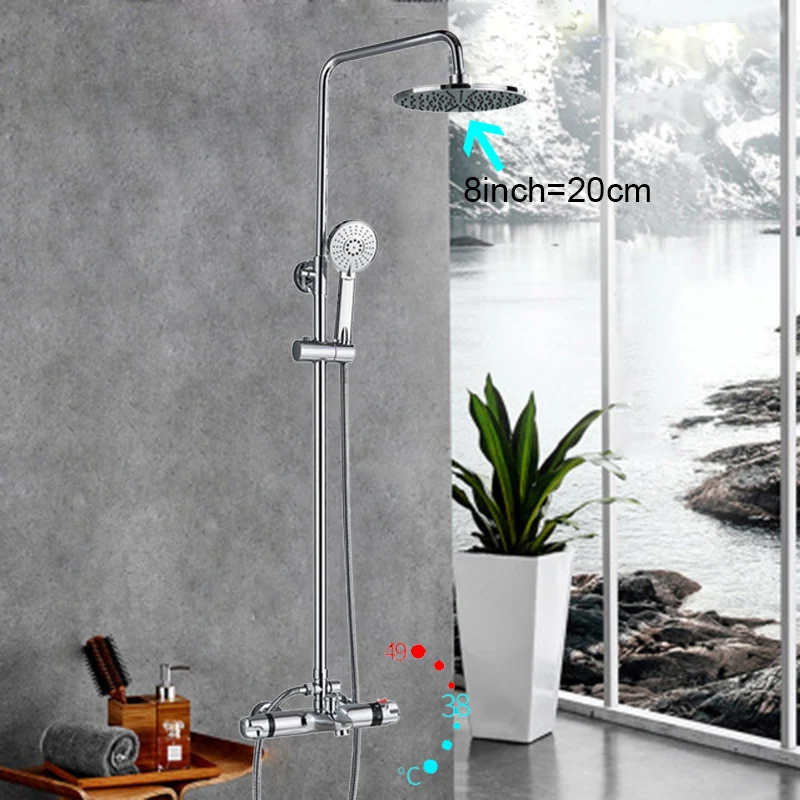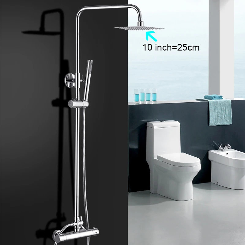 Термостатический смеситель для душа, хромированный, для ванны, 8 дюймов, 10 дюймов, термостатический, с двумя ручками, кран для горячей и холодной воды излив на ванну душ