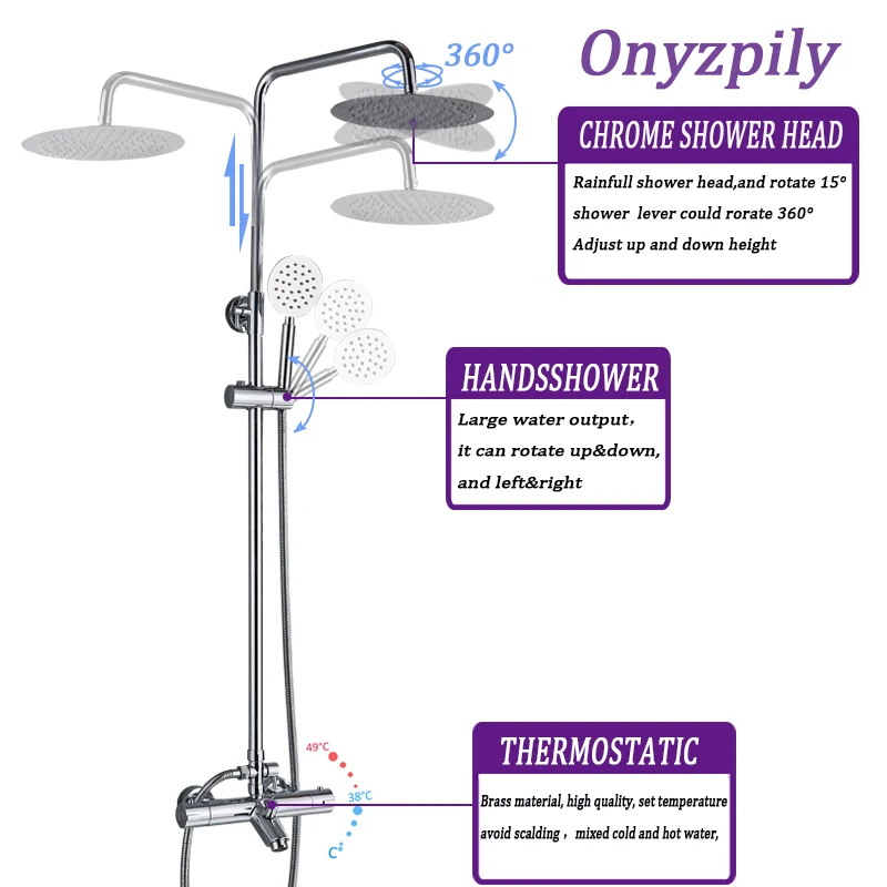 Onyzpily хромированный термостатический душевой кран для ванной комнаты, термостатический душ с двумя ручками, кран для горячей и холодной воды, излив на ванну душФункция: термостатический хромированный смеситель для душаХарактеристики: ультратонкий хромированный душОтделка: хромКоличество ручек: одна ручкаТип клапана: Керамический клапанМатериал корпуса смесителя: латуньМатериал ручки смесителя: ABS