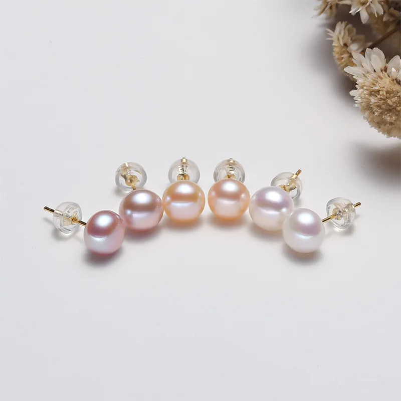 Серьги-гвоздики женские из серебра 925 пробы с натуральным пресноводным жемчугом