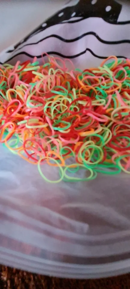 Het zakje van de elastiekjes was kapot. Daardoor lijkt het zakje voor de helft gevuld ivm de foto’s. Kleuren wel erg mooi!