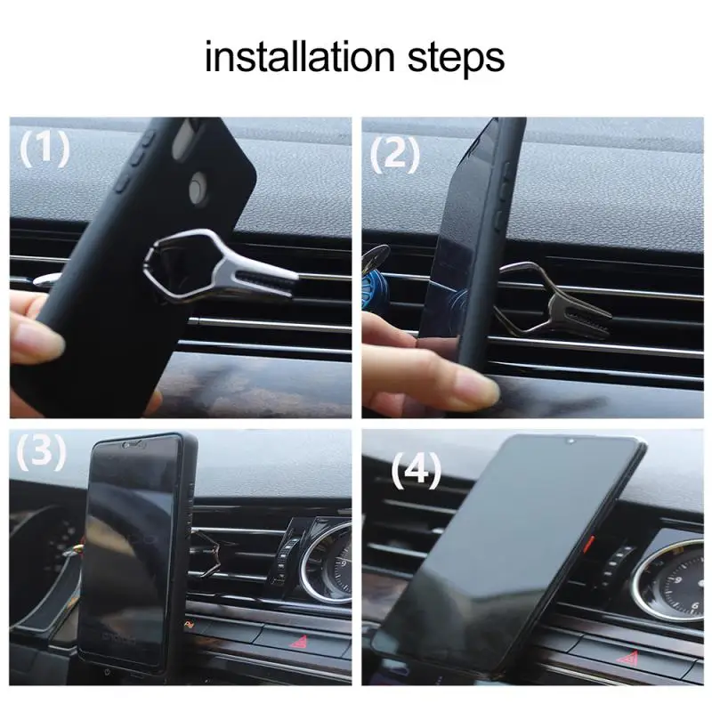 6. Изделие состоит из цинкового сплава, шестерни и силиконовой зубчатой клипсы. Внутренняя конструкция шестерни имеет 18 защелков, что может во многом гарантировать, что мобильный телефон находится в очень стабильном состоянии под любым углом, тем самым защищая мобильный телефон. На телефон не влияет дорожная вибрация или проблемы. Уникальный силиконовый зубчатый зажим позволяет установить его на вентиляционное отверстие автомобиля для лучшей GPS-навигации.