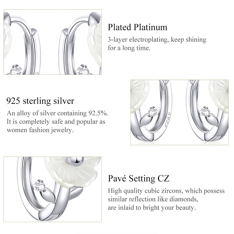 Материал: S925 + покрытая платиной + паве установка CZ + оболочка Размеры: 1,2*0,8 см Описание: Чистые и чистые белые лепестки цветут на солнце, чтобы добавить сладкий темперамент для вас.