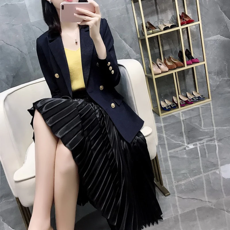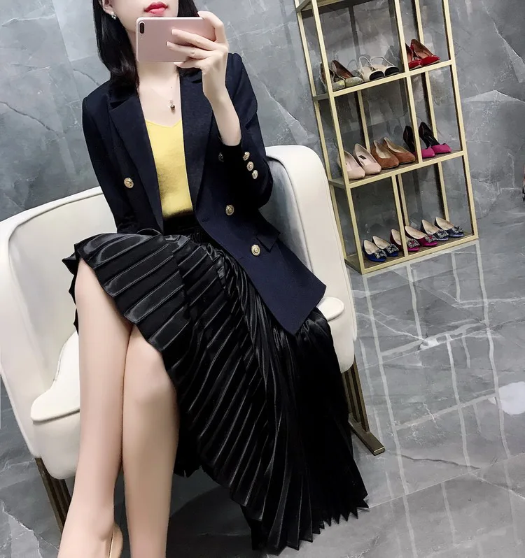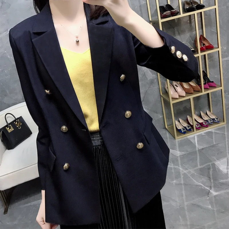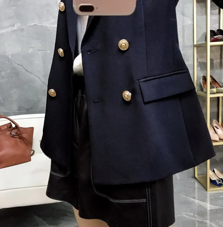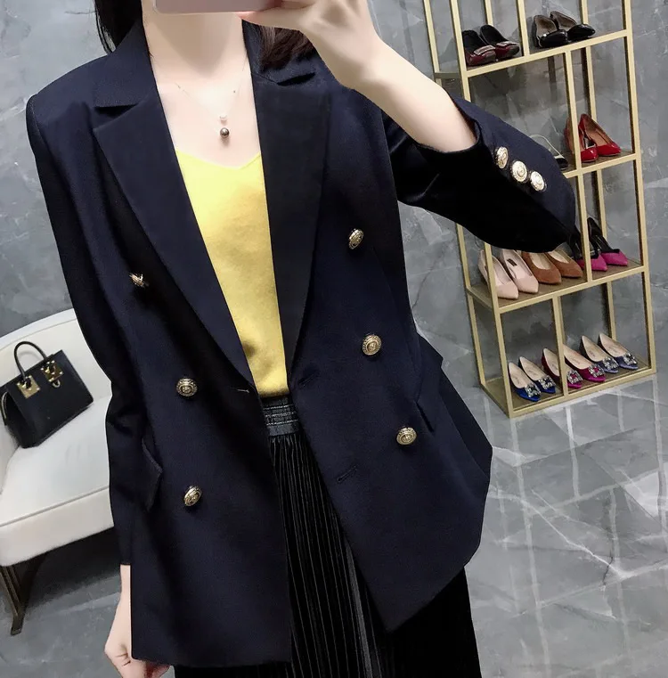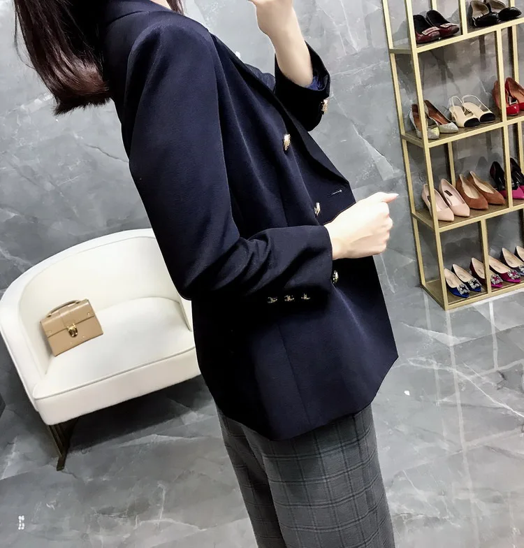 Женский блейзер с длинным рукавом, длинный двубортный блейзер с металлическими пуговицами, верхняя одежда, размера плюс 5XL, весна 2019