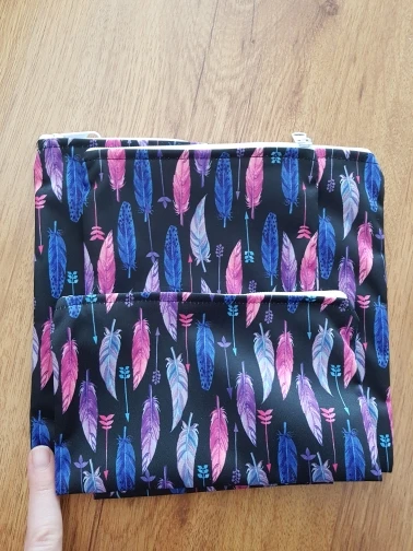 Увидев на фото сендвичи я решила,что это термо пакеты с фольгированной внутрянкой.Оказалось внутри просто обработанная воском поверхность,бутерброды и другую еду не стала бы носить в таких мешочках,если только,что - то в доп.упаковке.Вообщем применения я пока не придумала.По поводу качества нет претензий,сшиты хорошо и аккуратно.