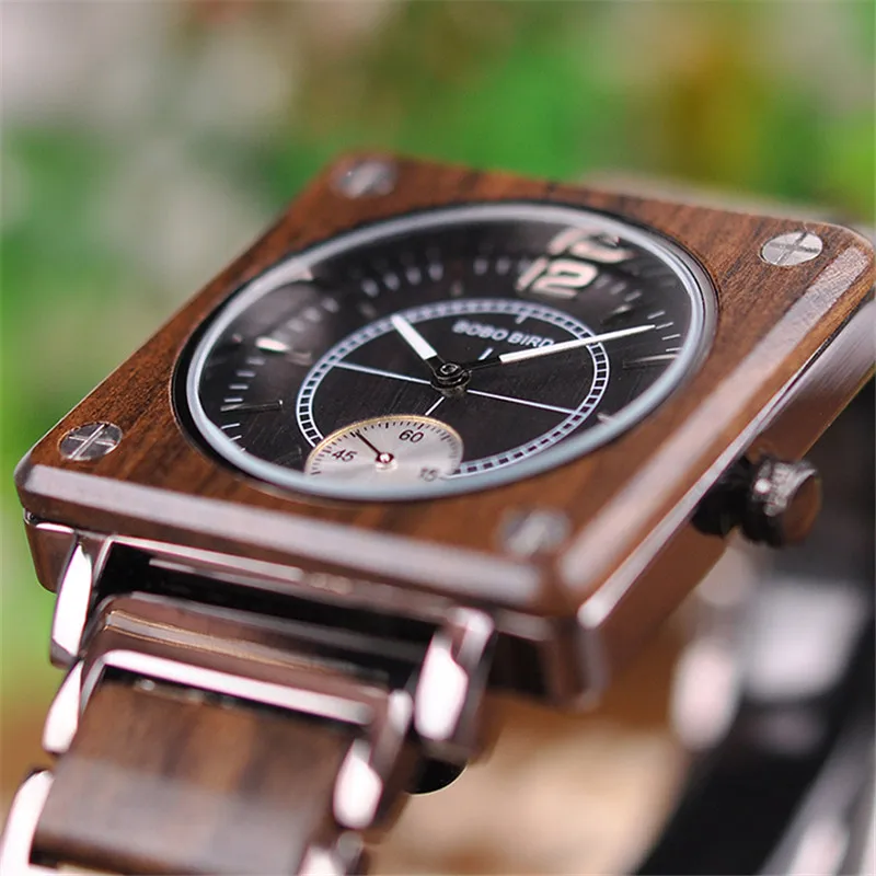 Марке де люкс БОБО птица деревянные Мужские квадратные кварцевые ча...