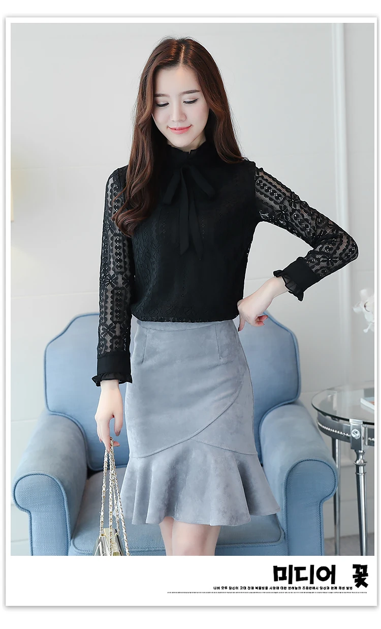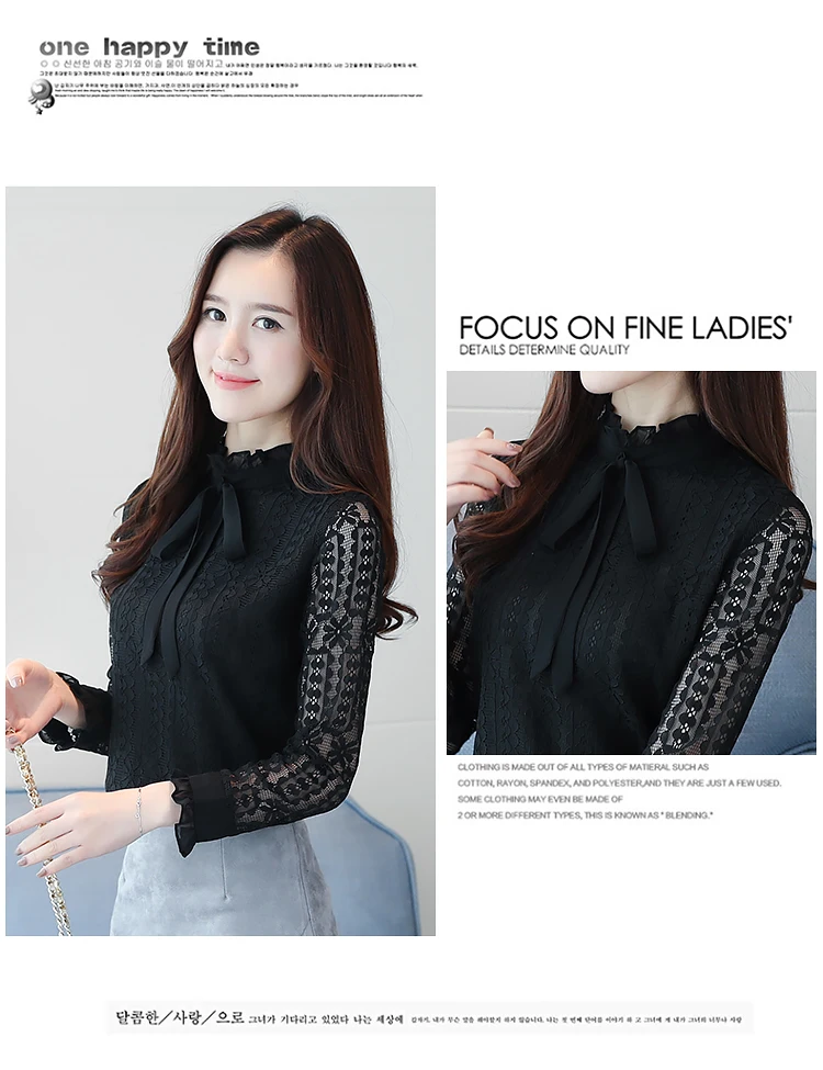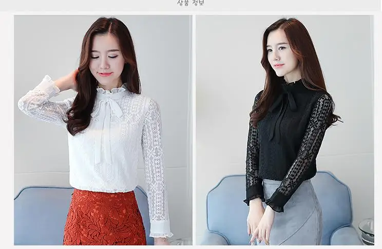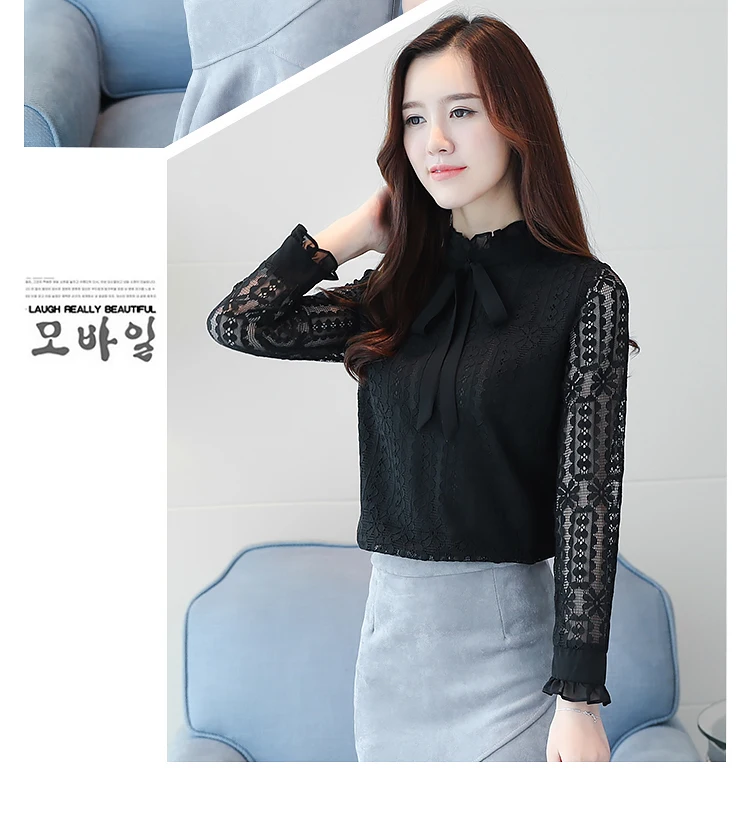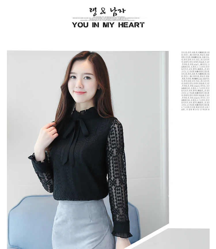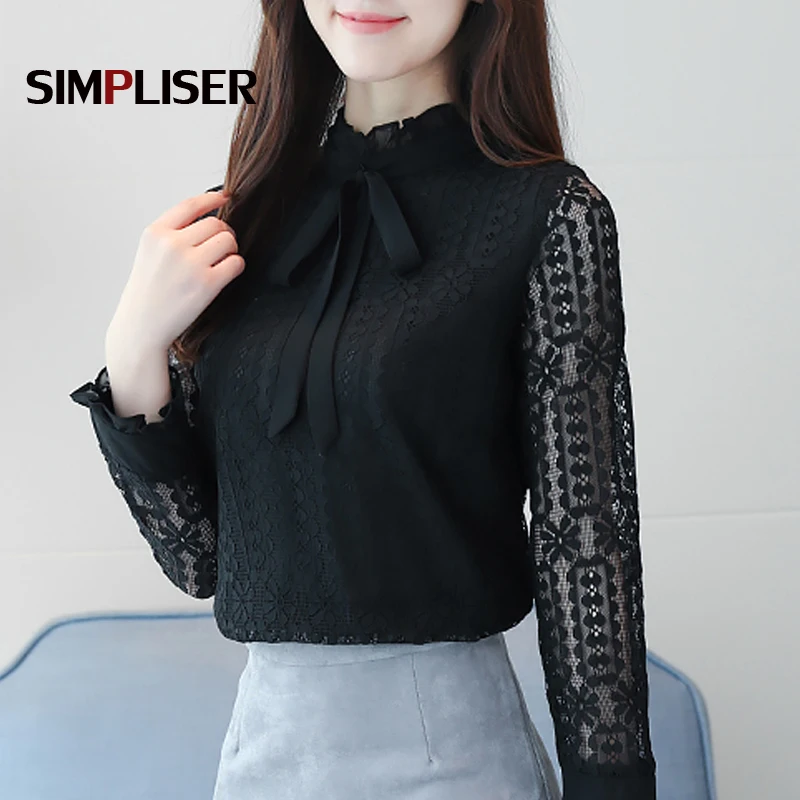 Женские кружевные рубашки белого и черного цвета, большие размеры 3XL, женские блузки с галстуком-бабочкой, милые женские офисные блузы, Корейская блуза 2020