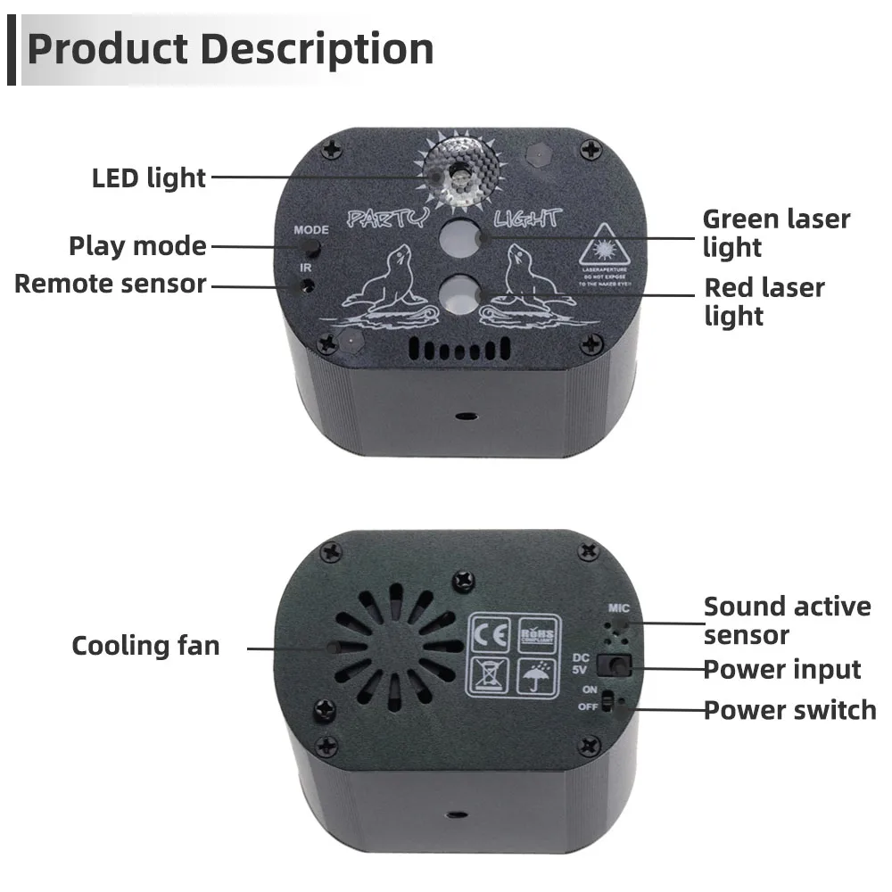 Этот мини-сценический свет предназначен для использования в помещении, имеет Блестящий цветной луч, который делает вашу комнату волшебной и замечательной. Подходит для семейных встреч, дискотек, танцевальных залов, КТВ, баров, сцены, отелей, ночных клубов, банкетов, игровых площадок и т. д.