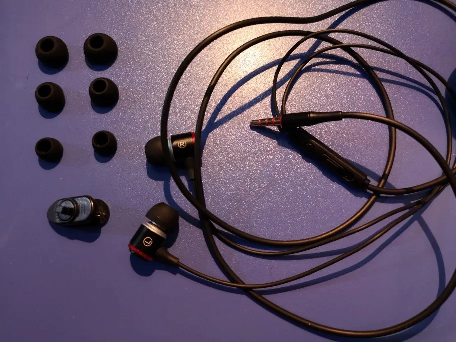 удивительно, но хорошее звучание за эти деньги. товар отслеживался. качеством удивлён. есть чехол, сменные элементы. необычный регулятор громкости.