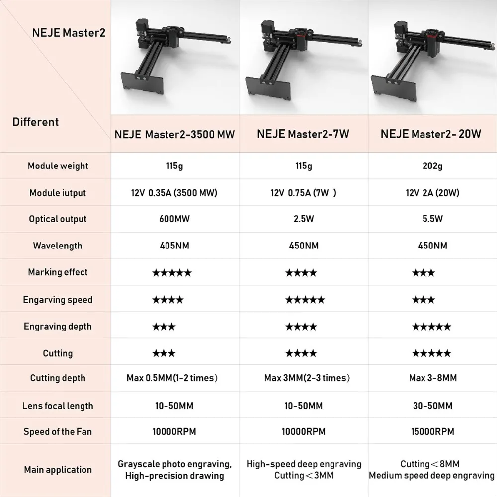* Модель управления: Программное обеспечение NEJE windows, приложение NEJE android, приложение NEJE Wireless для iOS и macOS, LaserGRBL для windows. OFF-Line