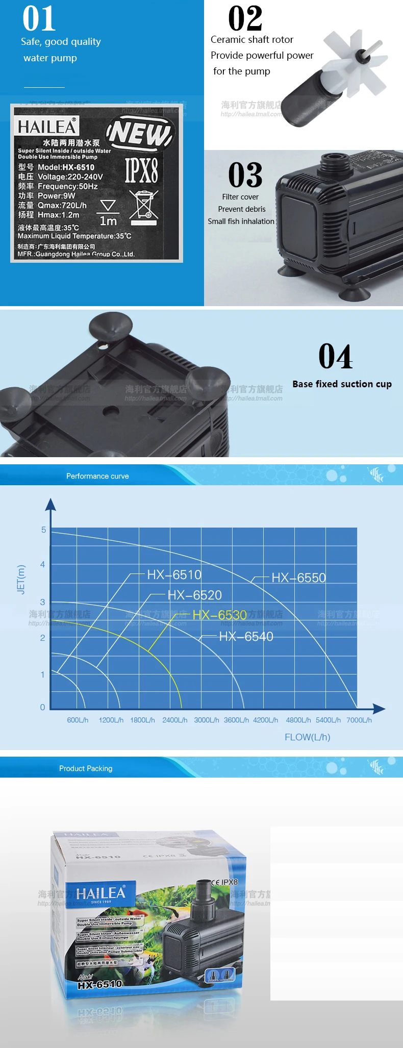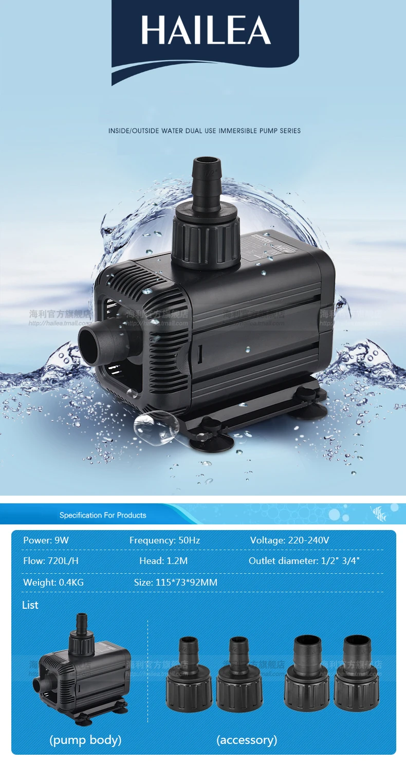 Бесшумный водяной насос HAILEA HX6510 HX-6510, плавающий погружной насос для аквариума с 4 насадками