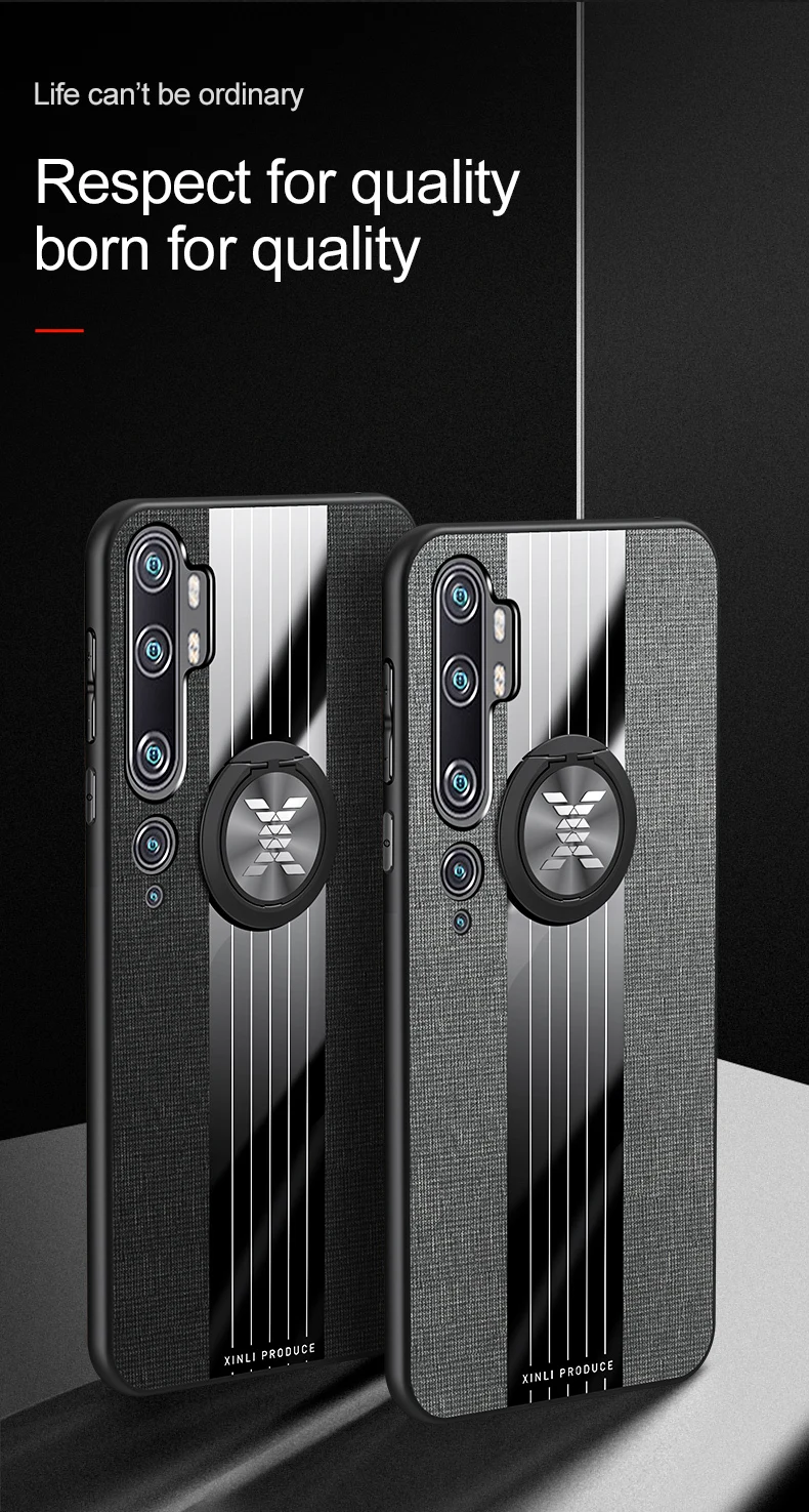 Чехол MAKAVO для Xiaomi Mi Note 10 Lite, чехол с кольцом-держателем, тканевый Жесткий Чехол, мягкая рамка, тканевый чехол для телефона Xiaomi Mi Note 10 Lite
