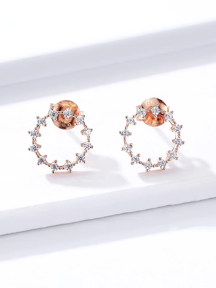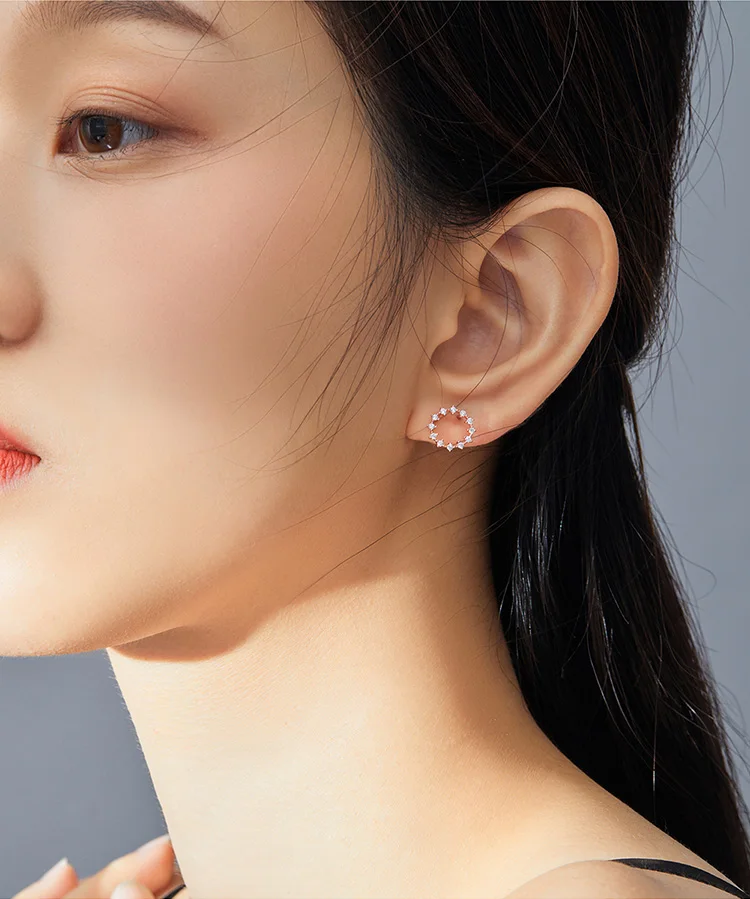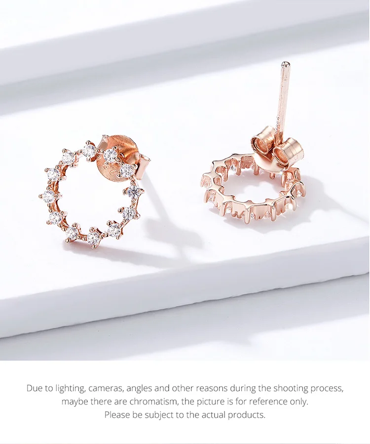 Материал: S925 + покрытие из розового золота + паве Размеры: 1*1 см Описание: Легко сочетающиеся и изысканные серьги-кольца из розового золота, украшенные ярким цирконием,-это ваше модное отношение.
